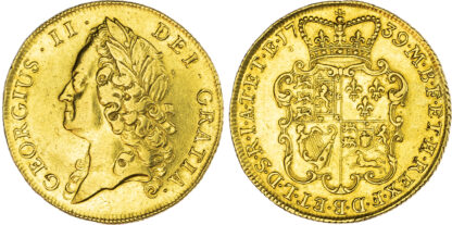 George II (1727-1760), Two-Guineas, 1739, laureate intermediate head left, reverse crowned garnished shield, seven string to harp, 16.72g, (EGC 574; S.3668). Near very fine.