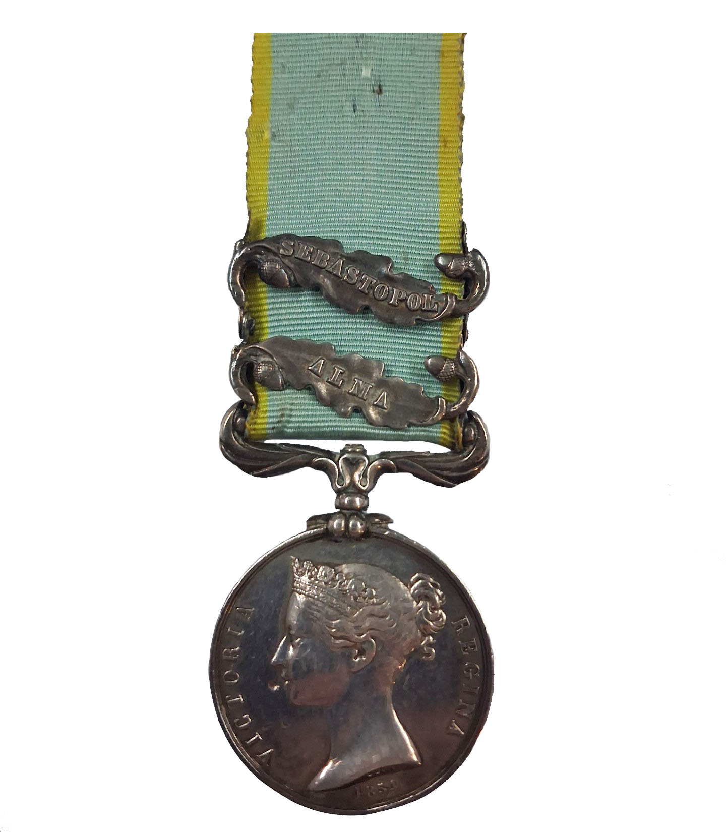 A 33rd (The Duke of Wellington’s) Regiment Battle of the Alma Casualty Medal awarded to Private William Greenwood who was Wounded in the Head and left Shoulder by Shell Splinters, in the attack on the Great Redoubt, comprising Crimea Medal, 1854-55, two clasps, Alma, Sebastopol, (Private Wm Greenwood 33rd Foot) engraved naming, very lightly toned very fine