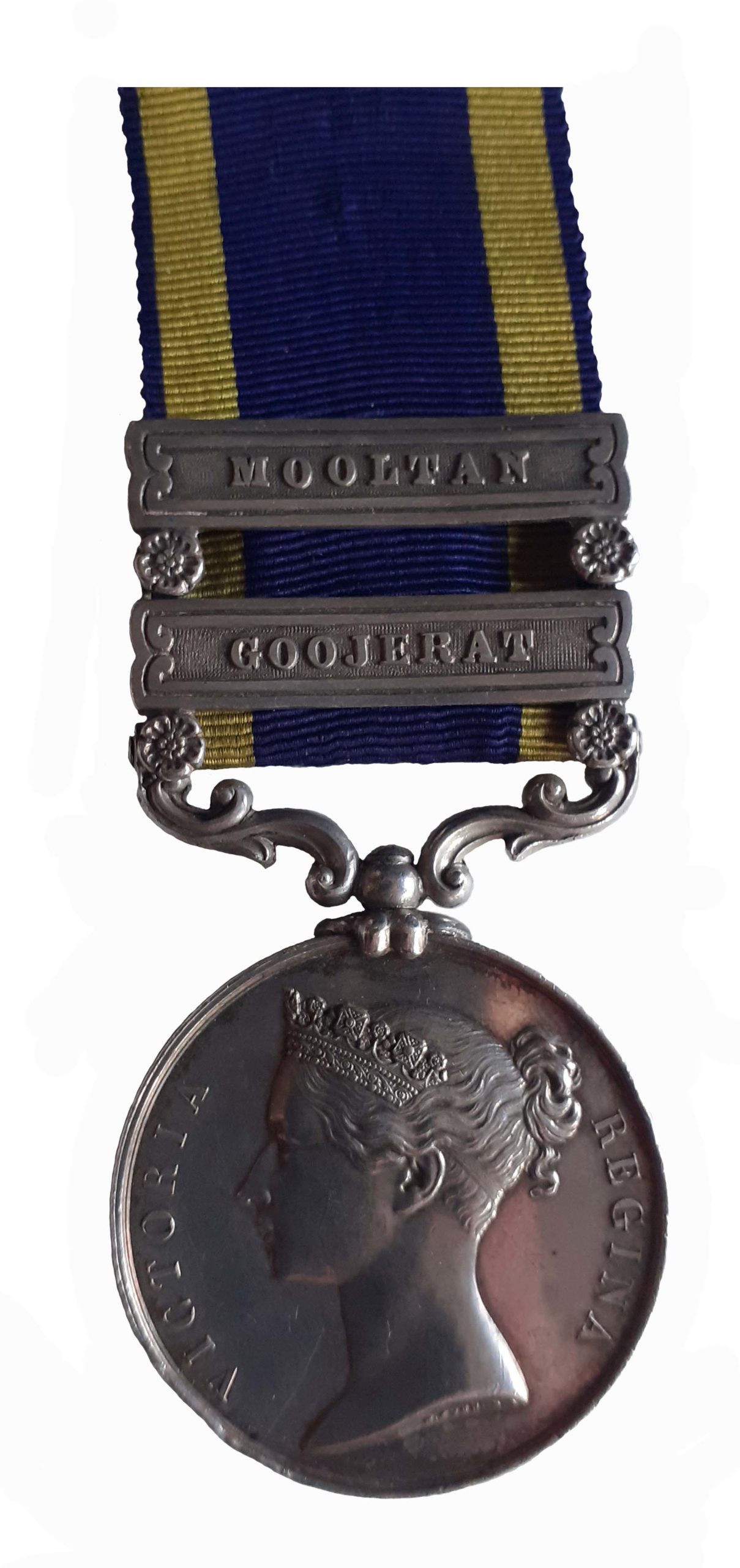 A Casualty Punjab Medal, 1848-49, two clasps, Mooltan, Goojerat, awarded to John Small, 1st European Fusiliers, (John Small, 1st Eur. Fus.) edge bump 6 O’clock otherwise very lightly toned fine.
