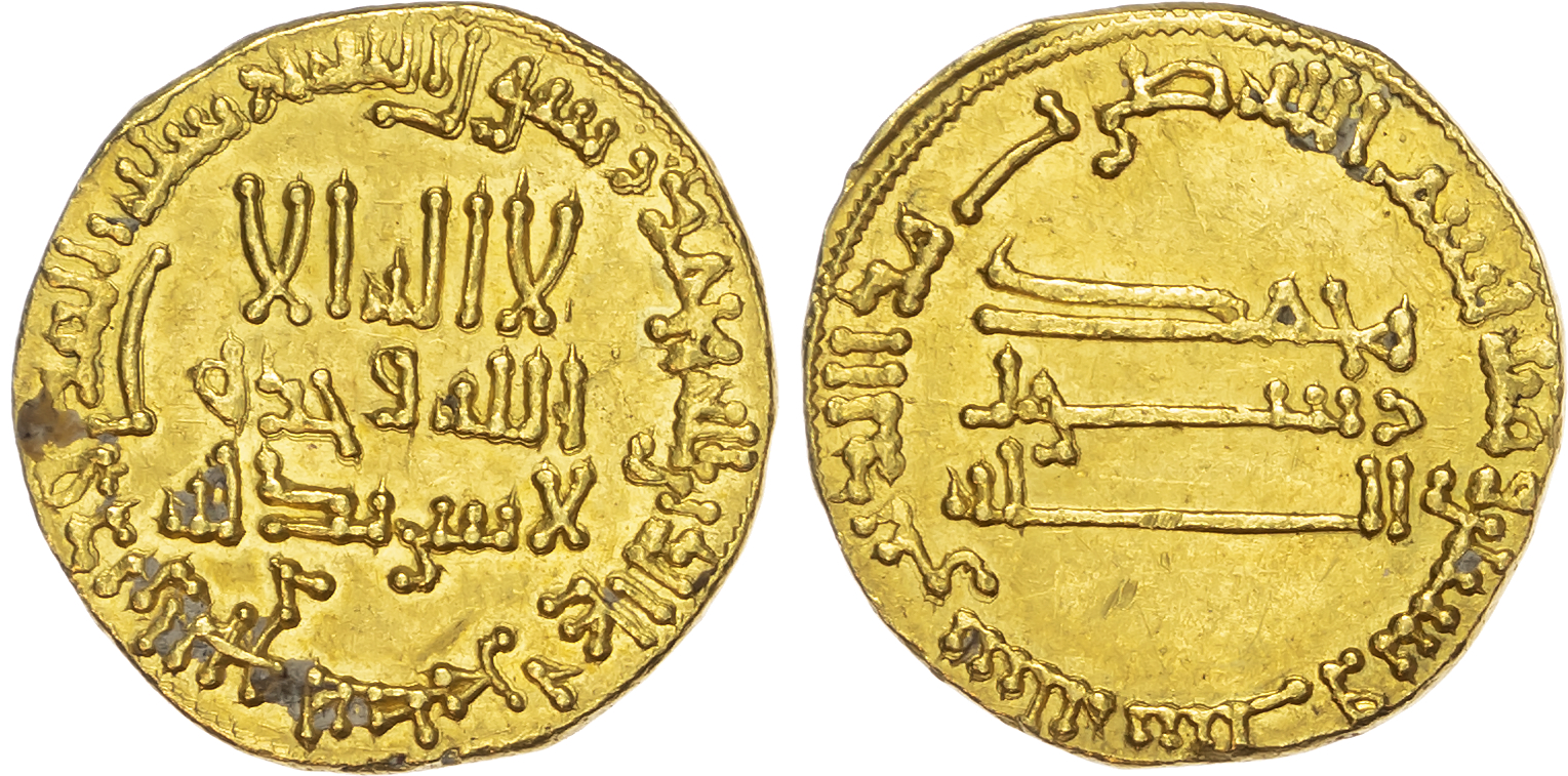 Abbasid, al-Mahdi (AH 158-169 / 775-785 AD), gold Dinar, AH 166 / 782/3 AD, no mint name, 4.25g (A. 214). Uncirculated, lustrous, reverse cleaned