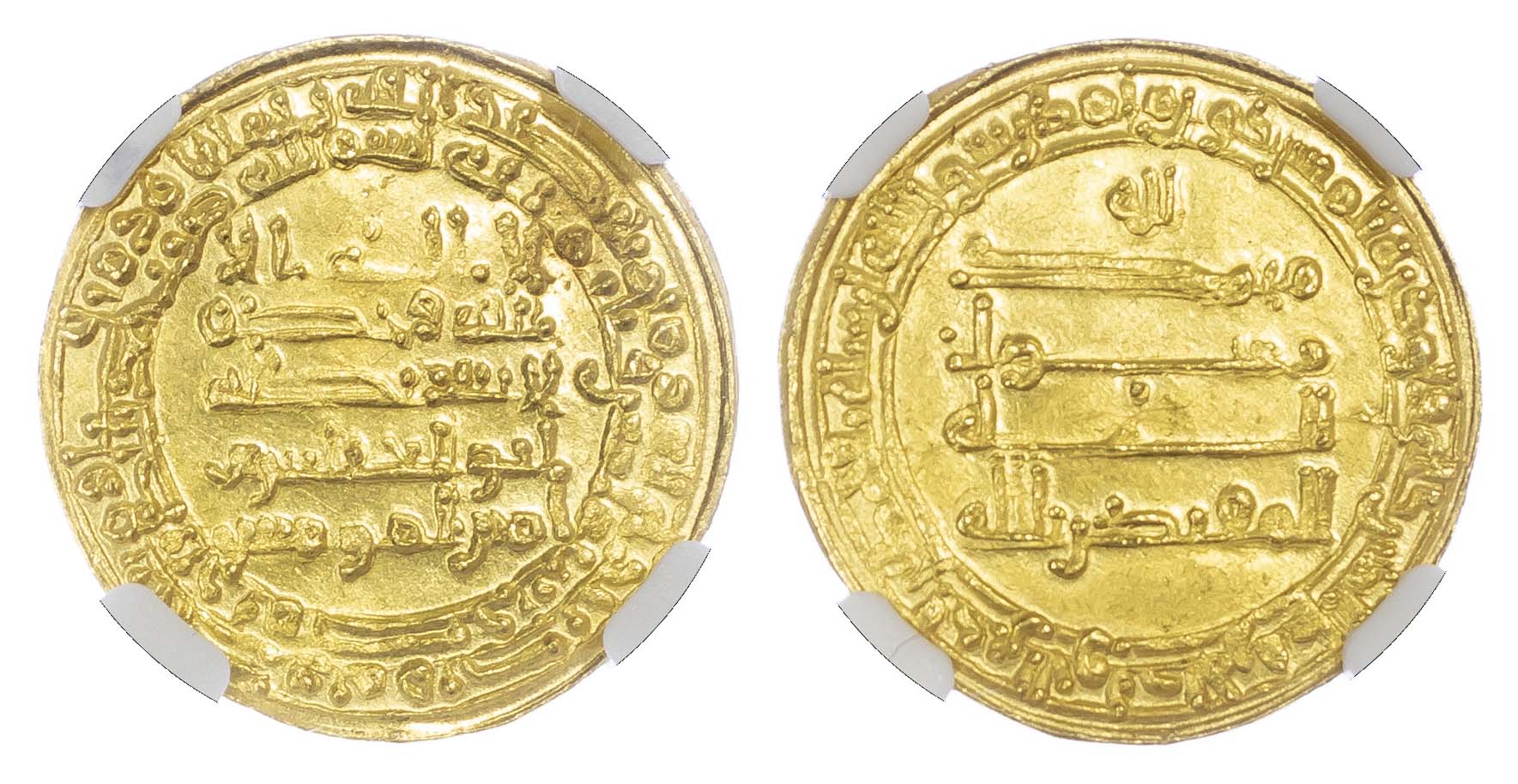 Abbasid, Al-Muqtadir (AH 295-320 / 907-932 AD), gold Dinar, AH 309 / 921 AD, Misr mint, citing heir Abu’l Abbas, 4.02g (Bernardi 242De).