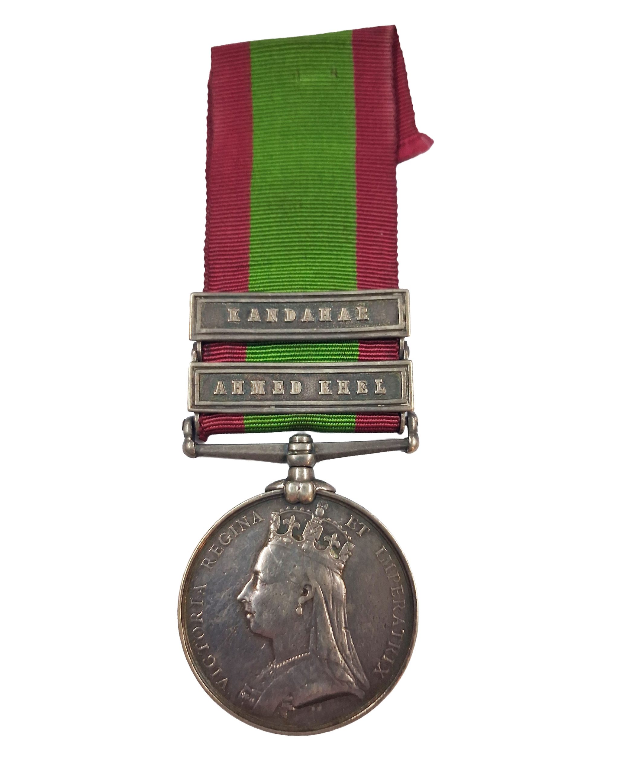 Afghanistan Medal 1878-80, two clasps, Ahmed Khel, Kandahar awarded to Private, later Serjeant, Frank Toe, 2nd Battalion 60th Regiment of Foot (1515 Pte. F. Toe. 2/60th Foot) light pitting to obverse and naming, otherwise fine