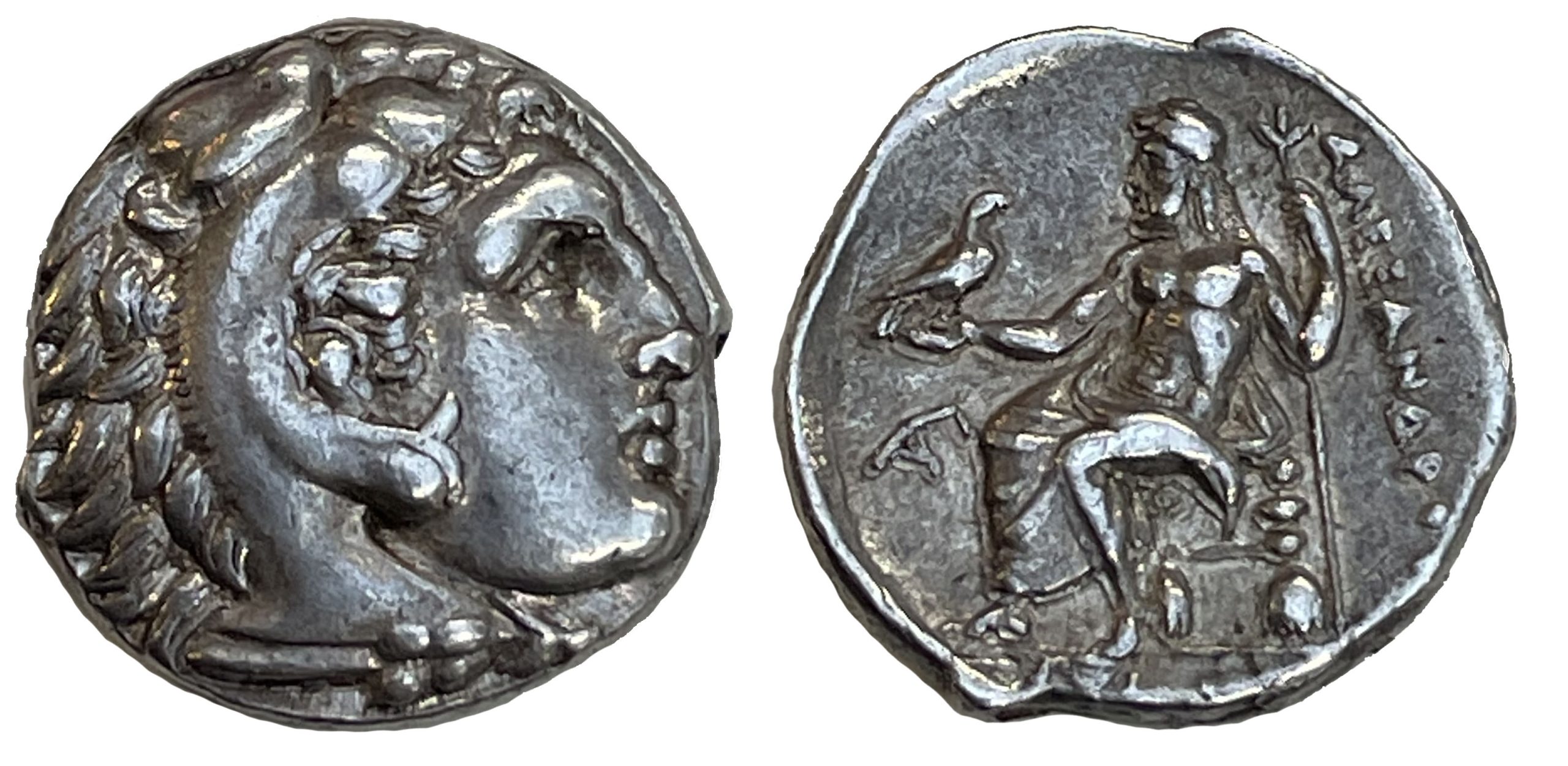 Alexander the Great (336-323 BC), Silver Drachm, Lampsakos, posthumous issue, c. 323-317 BC, 4.23g. Obverse: Head of Herakles right, wearing a lionskin headdress. Reverse: Zeus seated left, holding eagle and sceptre. (Price 1362). Good Very Fine.