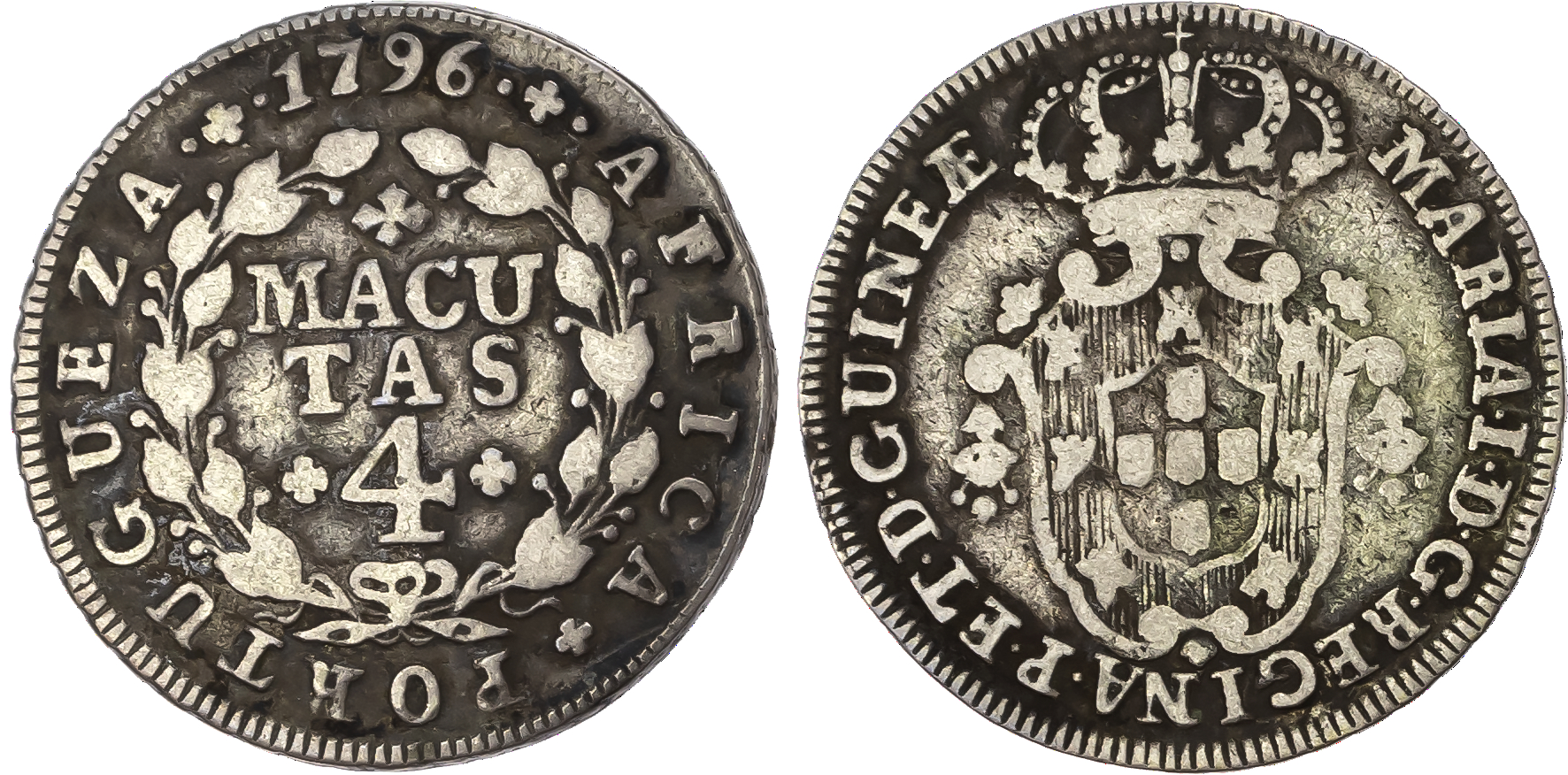Angola (Portugese), Maria I (1786-1799), silver 4 Macutas, 1796, 5.36g (Gom. 05.02; KM 32).