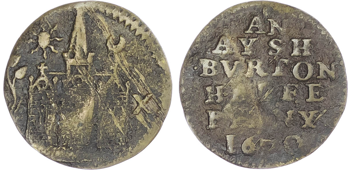 Ashburton 1/2d. 1670, Church/6 line legend. W.4 F.