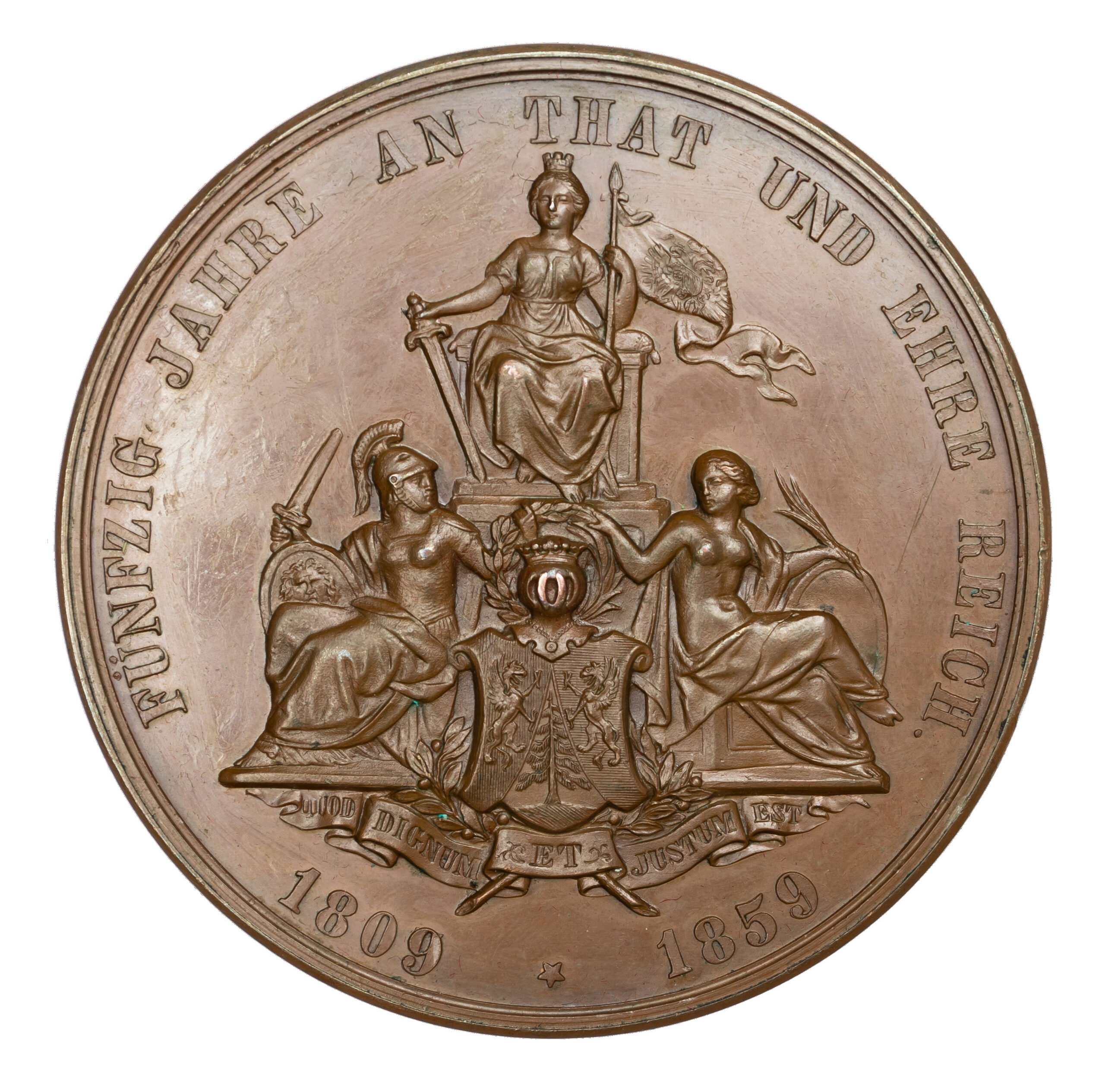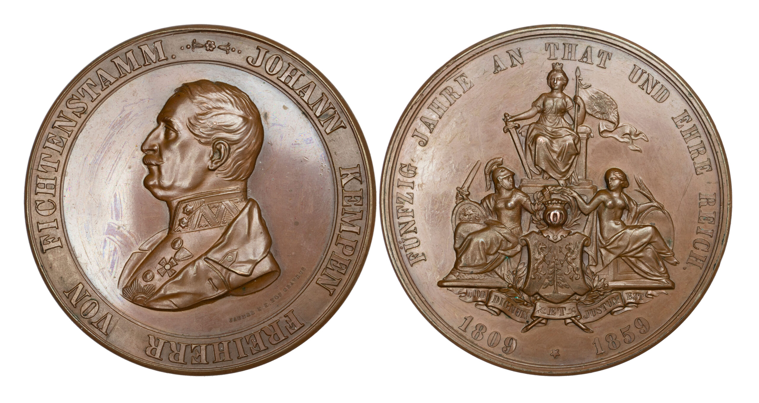 Austria, Johann Kempen, Baron of Fichtenstamm, 50 Years of Service in the Imperial and Royal Army, AE Medal 1859 by Jauner. Extremely Fine.