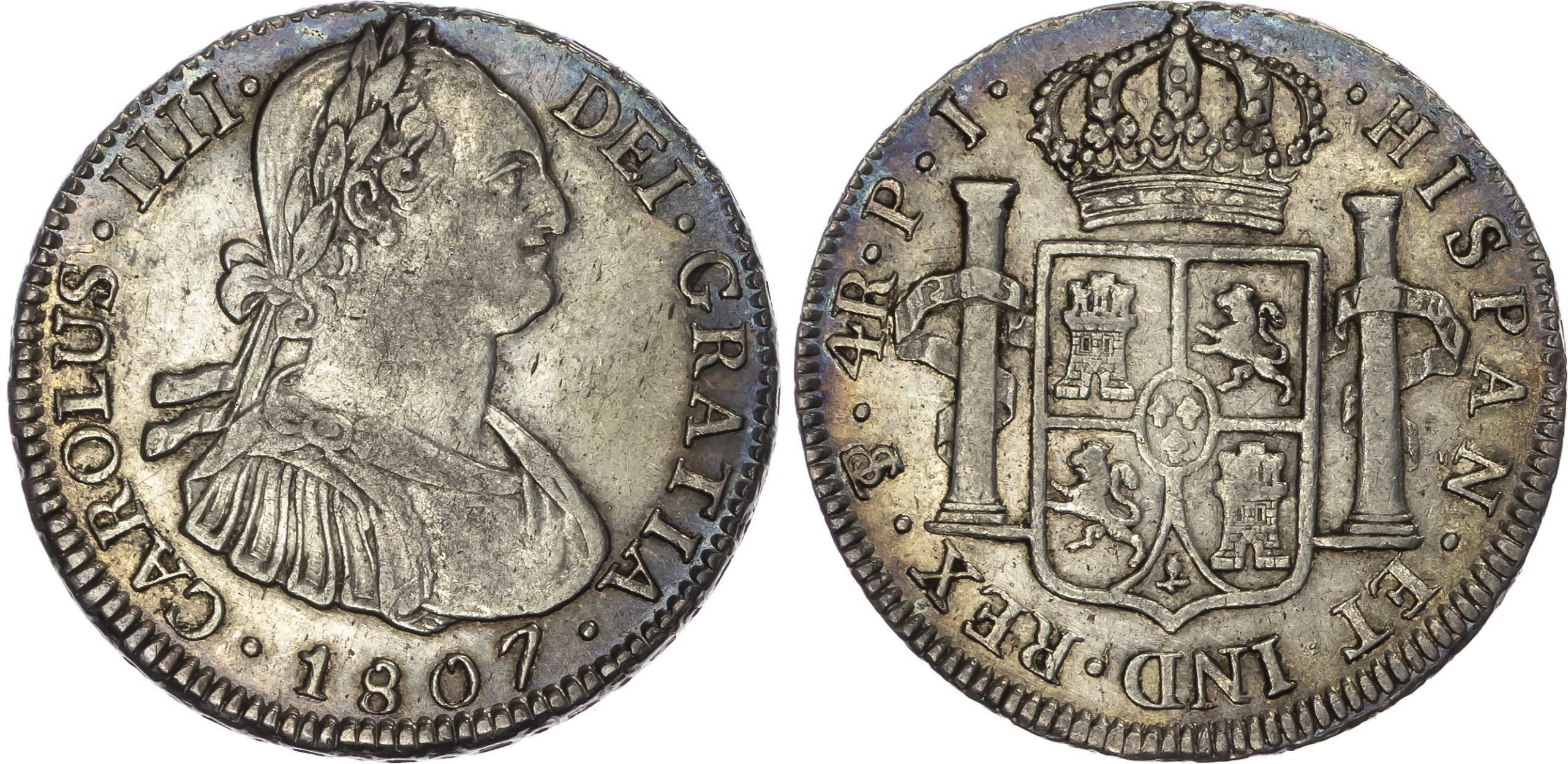 Bolivia, Charles IV (1788-1808), silver 4 Reales, 1807 PTS PJ, Potosi, 13.54g (KM 72). About Extremely Fine, cleaned.