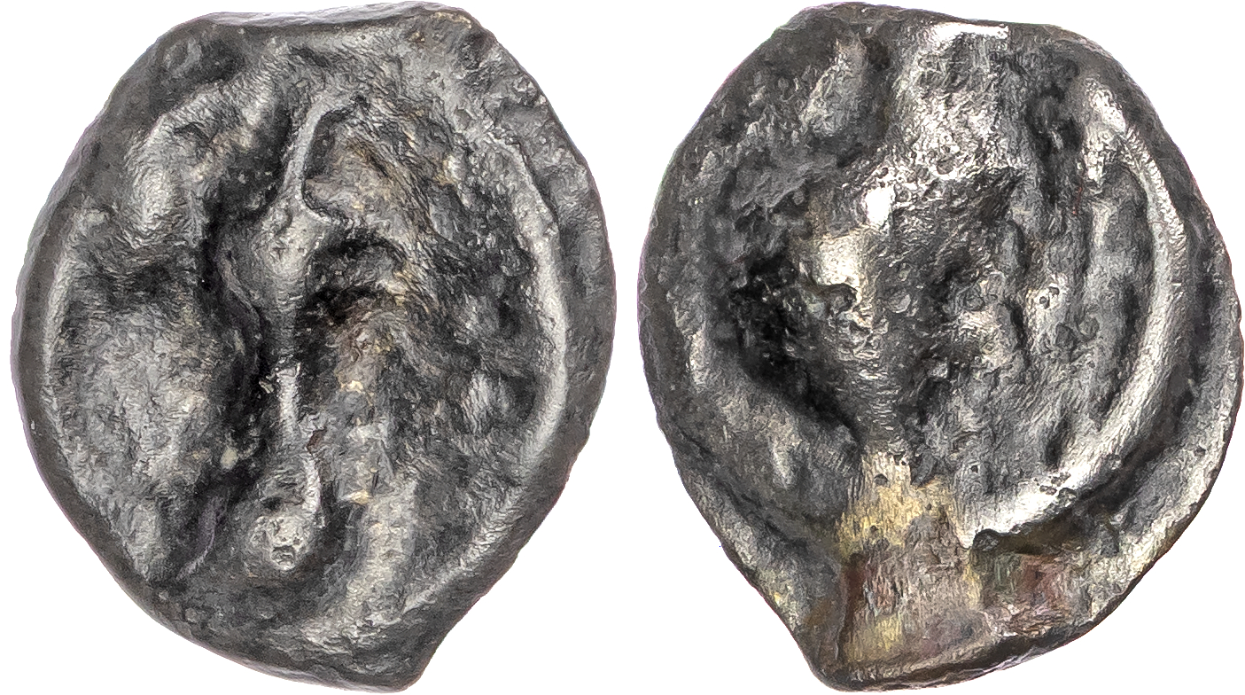 Cantiaci, Bronze Potin, c. 120-100 BC, ‘Thurrock Head Type’, 3.77g. Obverse: Head to left. Reverse: Degraded bull butting. (ABC 132). Fine.
