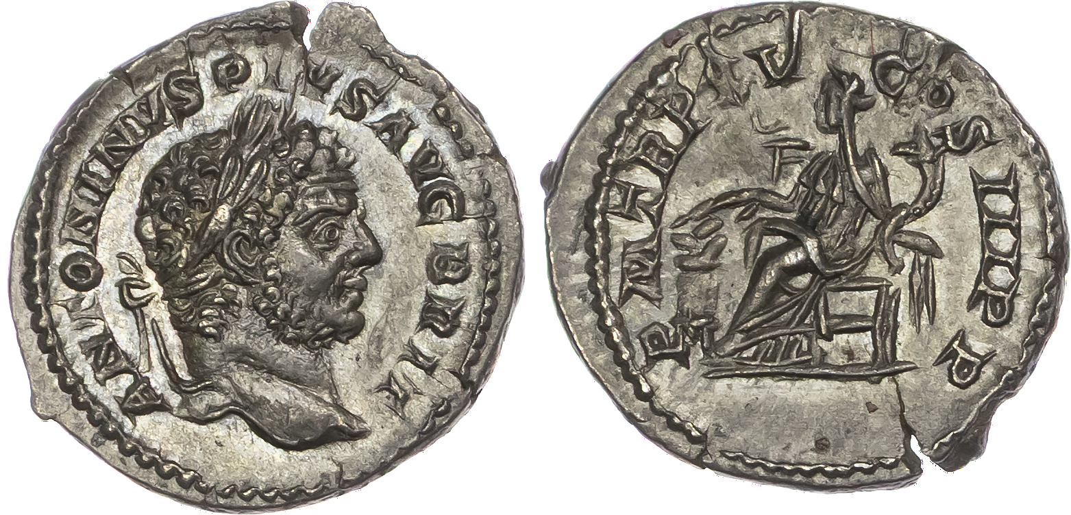 Caracalla (AD 198-217) AR Denarius, Rome, AD 212, 2.96g. ANTONINVS PIVS AVG BRIT, laureate head of Caracalla right. Rev. PM TR P XV COS III P P, Salus seated left,… Read more