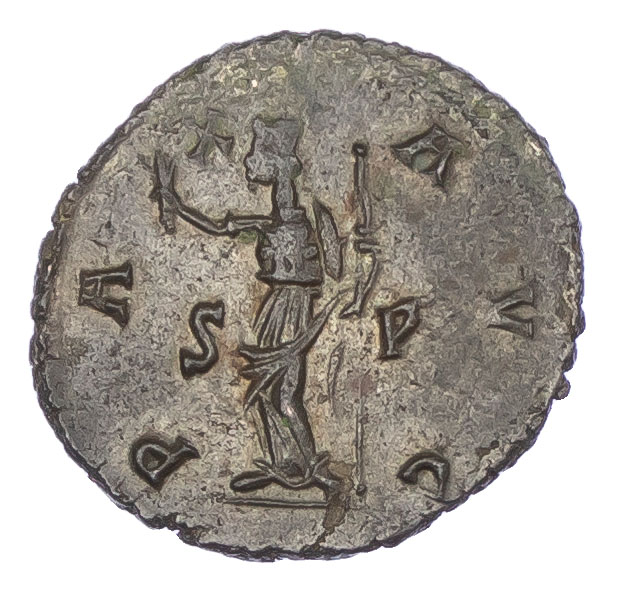 Reverse: PA-X AVG, Pax standing left, holding sceptre and branch, S – P across fields.
