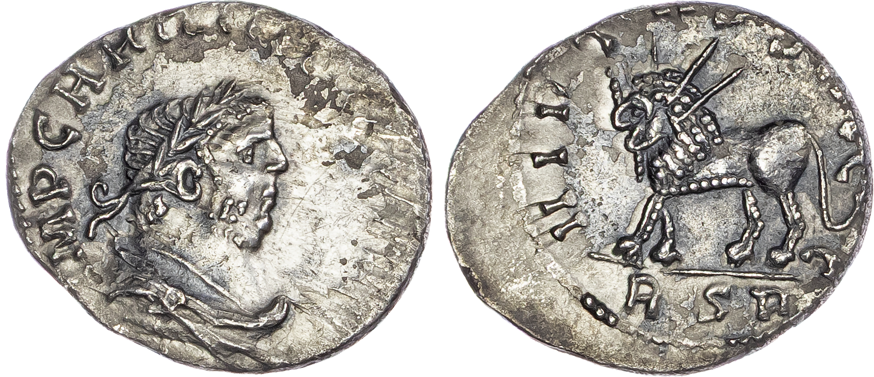 Carausius (AD 286-293) AR Denarius, ‘RSR’ mint, 3.28g. IMP CARA[SIVS P F AVG], laureate, draped and cuirassed bust of Carausius right. Rev. VIRTVS [SAECC], radiate lion walking left, holding thunderbolt in its jaws, RSR in exergue. (RIC 174). Extremely Rare. About Extremely Fine.