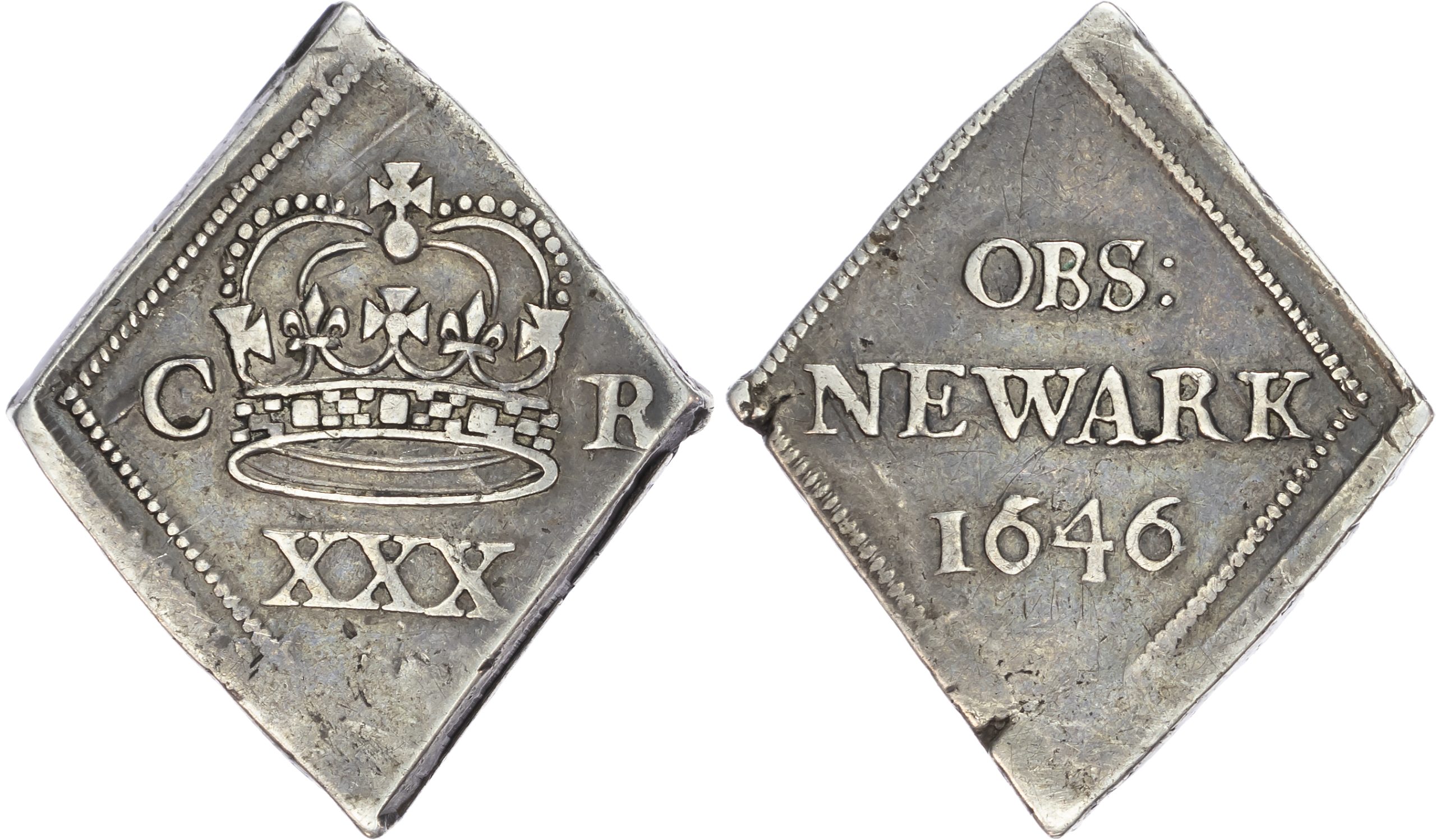 Charles I (1625-1649), AR Halfcrown, Newark besieged, 1646. Jewelled crown, C R to either side, XXX below, within dotted border, Rev. OBS: / NEWARK / 1646 within dotted border, 16.29g/12h. (N. 2638; S. 3140A). Good Very Fine, toned. A pleasing example.