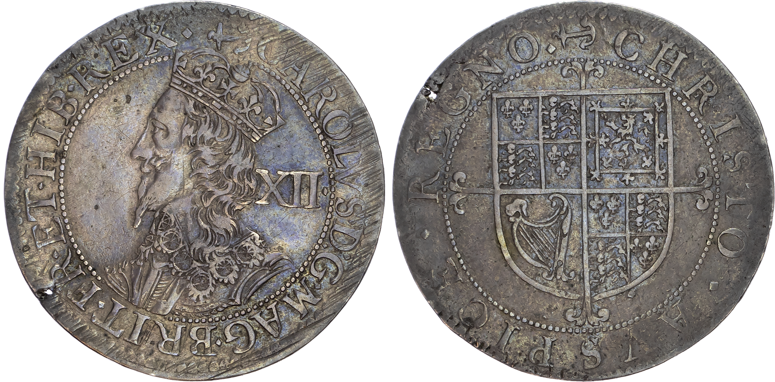 Charles I (1625-1649), AR Shilling, Nicholas Briot’s second milled issue (1638-1639), mm. Anchor. Briot’s late bust left, crowned, Rev. Square-topped shield over cross moline, 5.85g/6h. (N. 2305; S. 2859). Good Very Fine, adjustment marks to obv., flan crack at 7h.