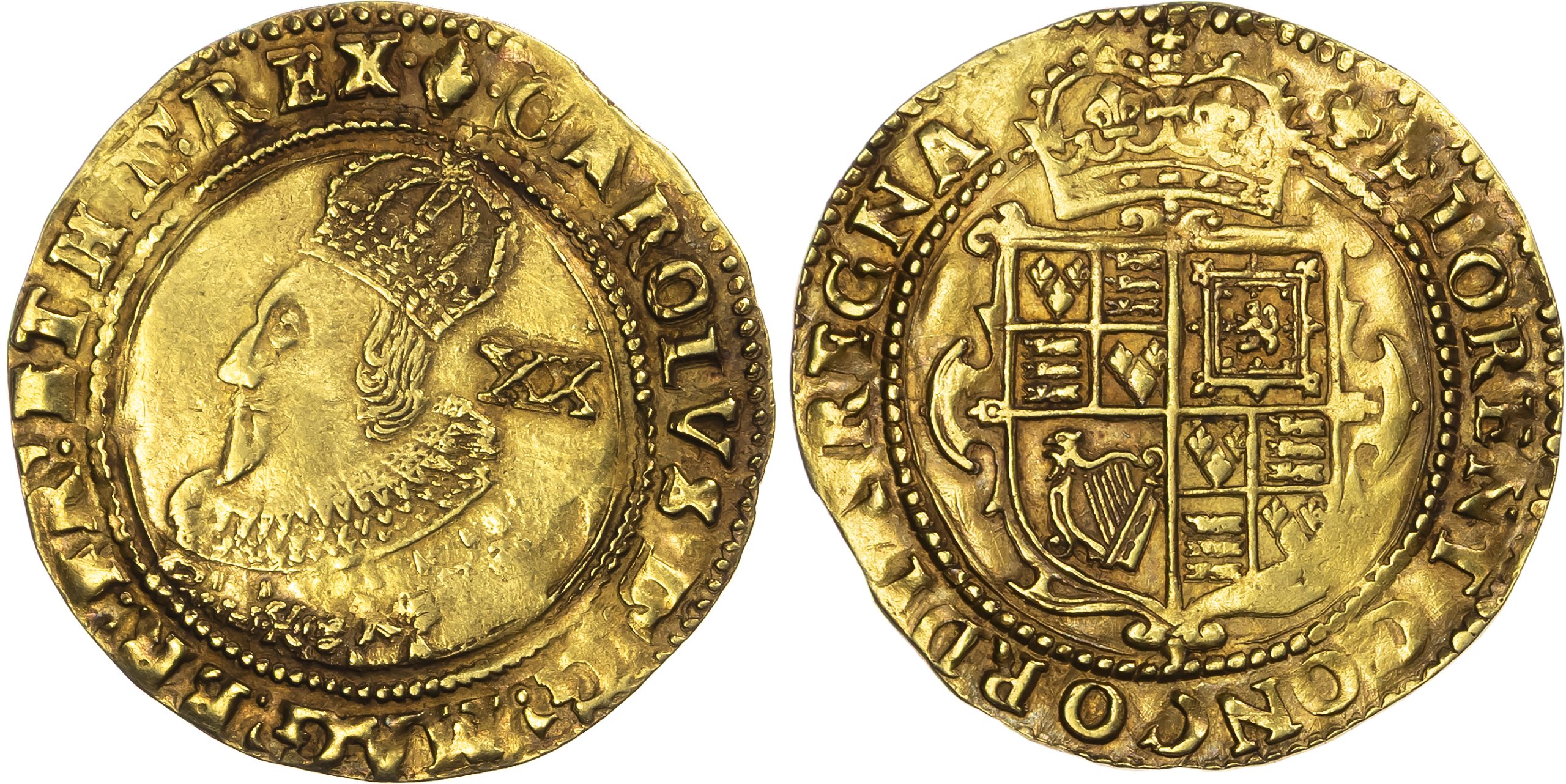 Charles I (1625-1649), Silver ‘Declaration’ Shilling, 1643. Civil War Issues, Oxford mint, mm. plume (obverse only). CAROLVS:[D:G:MAG:]BRIT:FR:ET:HI:REX, crowned bust let, XII behind, Rev. EXVRGAT:DEVS:DISSIPENTVR:INIMICI / RELIG:PROT LEG:ANG LIBER:PAR, three plumes above, date below, 5.82g/2h. (Brooker 935 (same obv. die); Morr, F-3; N. 2442; S. 2972. Good Very Fine to near Extremely Fine, toned, slightly double struck with some weakness to obverse.