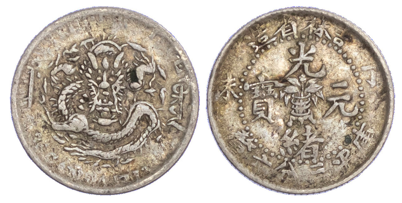 China, Kirin, silver 5 Cents, 1907, 1.30g (LM 571).