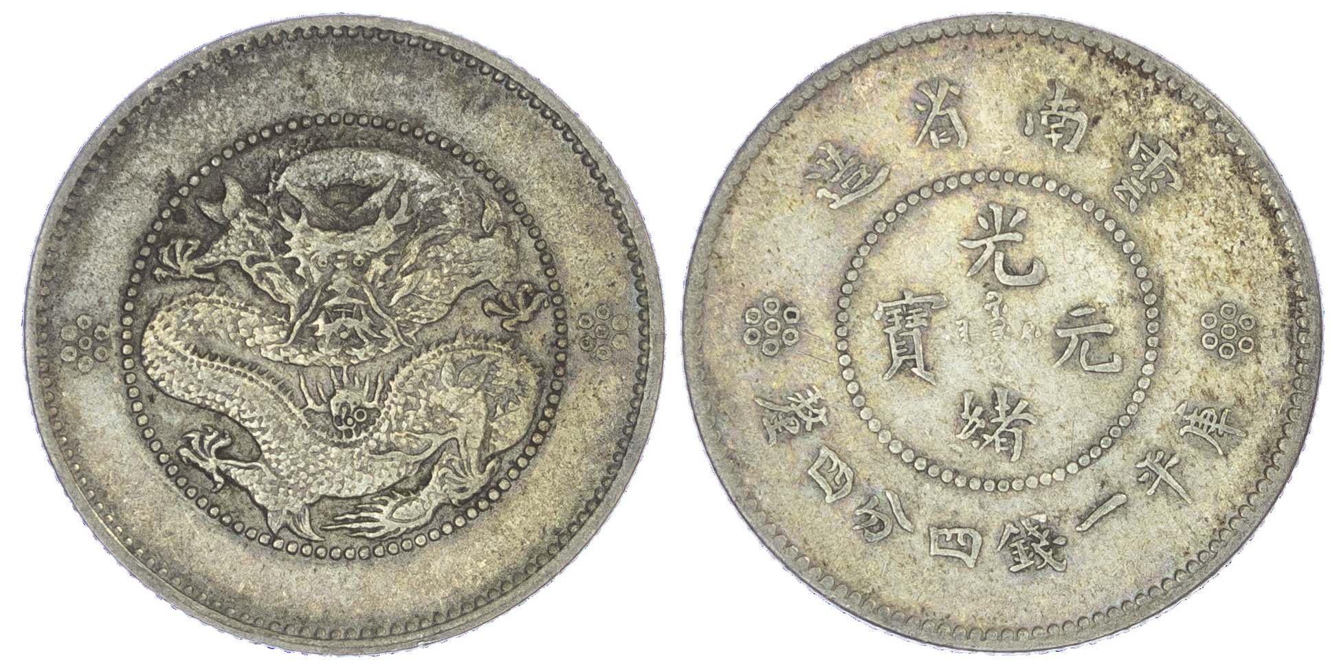 China, Yunnan Province, silver 20 Cents / 1 Mace 4.4 Candareens, 1911, 5,44g (LM 423).