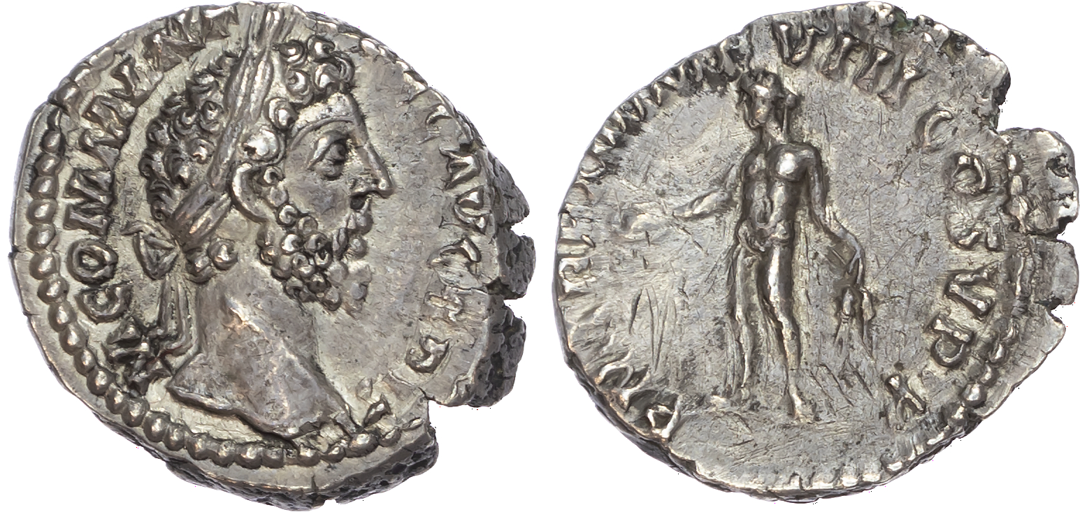 Commodus (AD 177-192) Silver Denarius, Rome, AD 188, 3.49g. Obverse: M COMM ANT P FEL AVG BRIT, laureate head of Commodus right. Reverse: PM TR P XIII IMP VIII COS… Read more