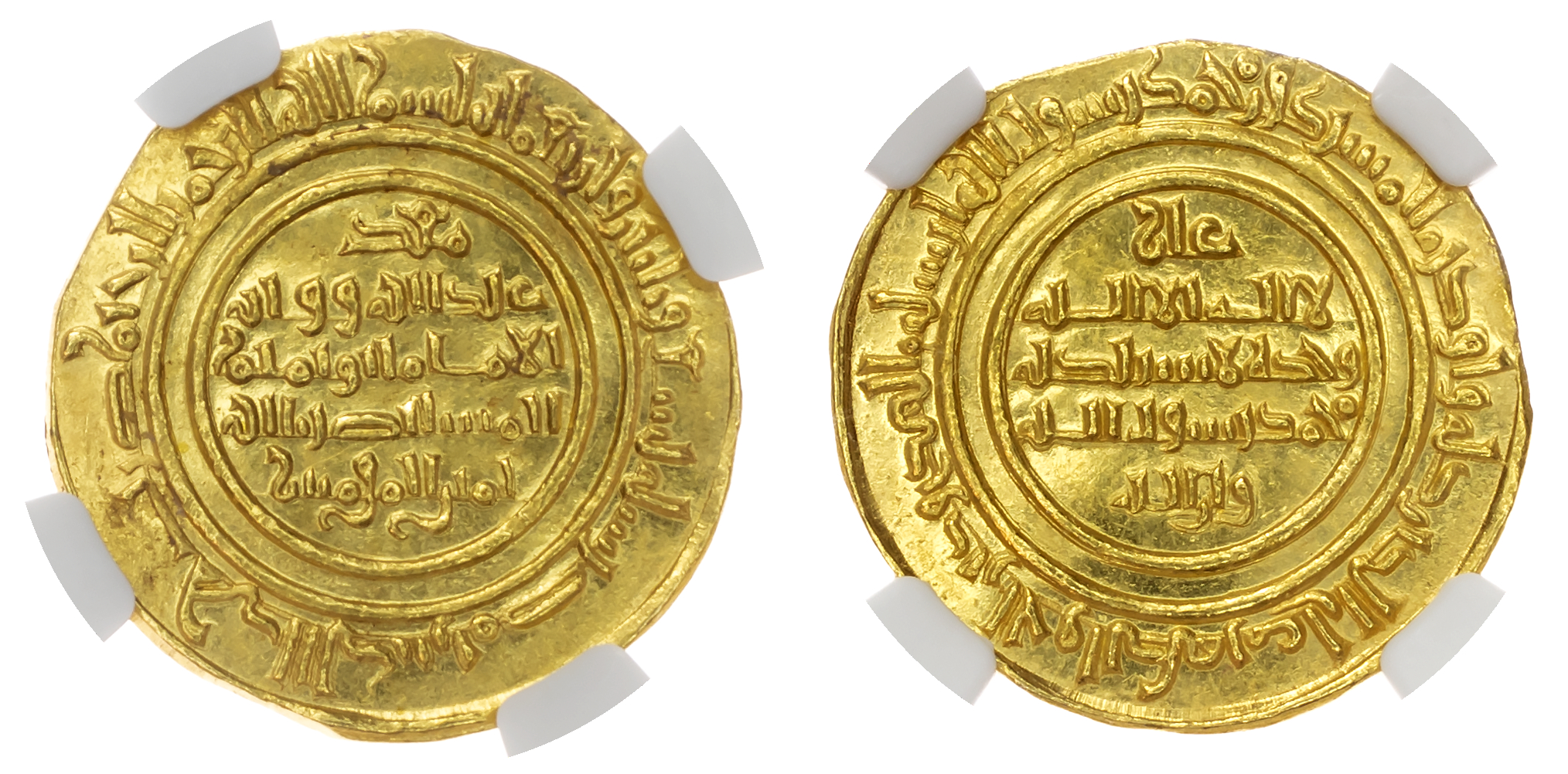 Fatimid, al-Mustansir (AH 427487 / 1036-1094 AD), gold Dinar, AH 439 / 1047/8 AD, Misr, 4.12g (A. 719.2; N. 2119 (type I1)). In NGC holder graded MS 63 (6914394-008). Rare, a short-lived type used at Misr only from AH 439/40 of magnificent quality