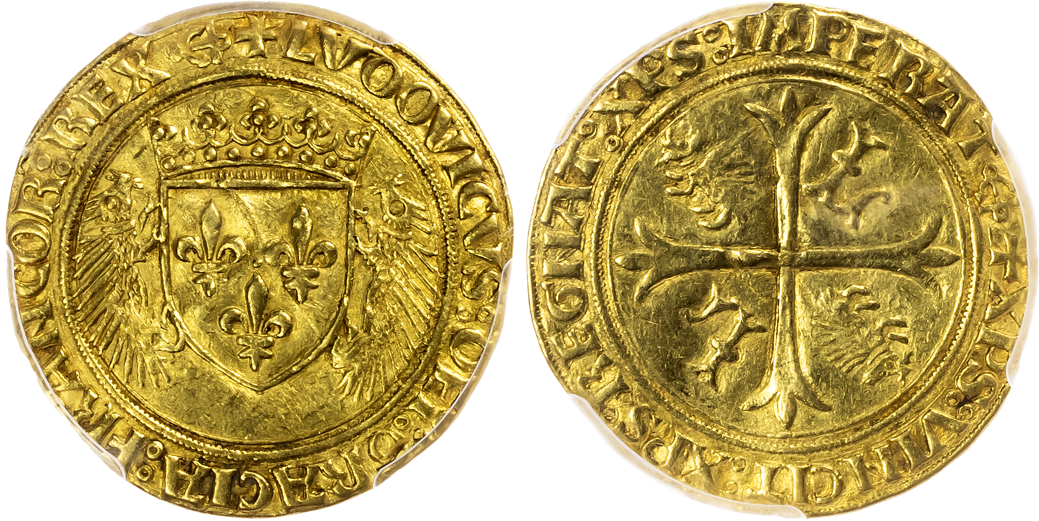 France, Louis XII (1498-1514), Écu d’or aux porcs-épics, no date (1507-1514), Bayonne, 3.35g (Dy. 655; Fr. 325). In PCGS holder graded AU 58 (36492722). Second finest known in the PCGS census.