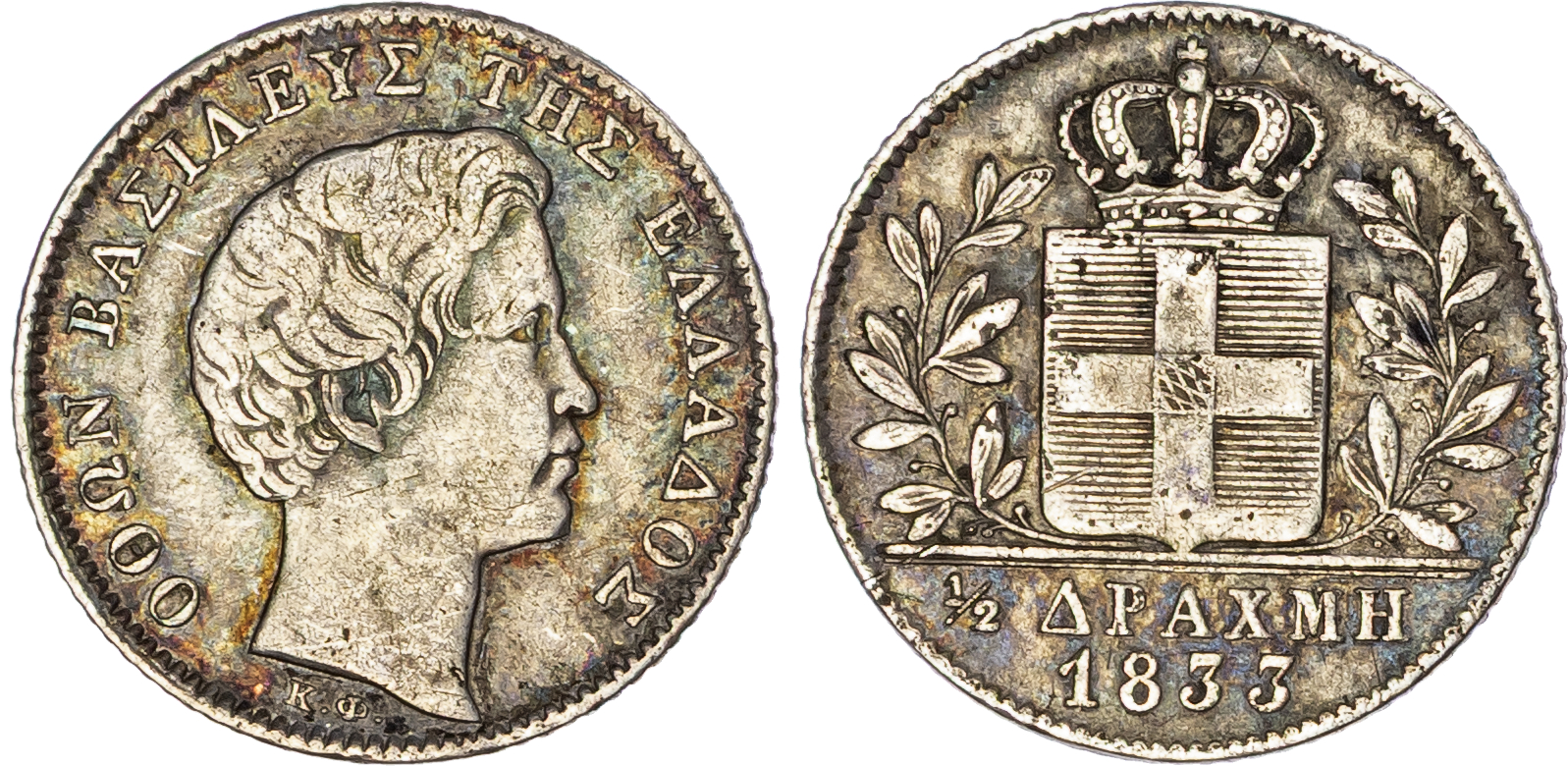 Greece, Otto I (1832-1862), silver half Drachma, Munich, 1833, 2.20g (KM 19). Good Very Fine.