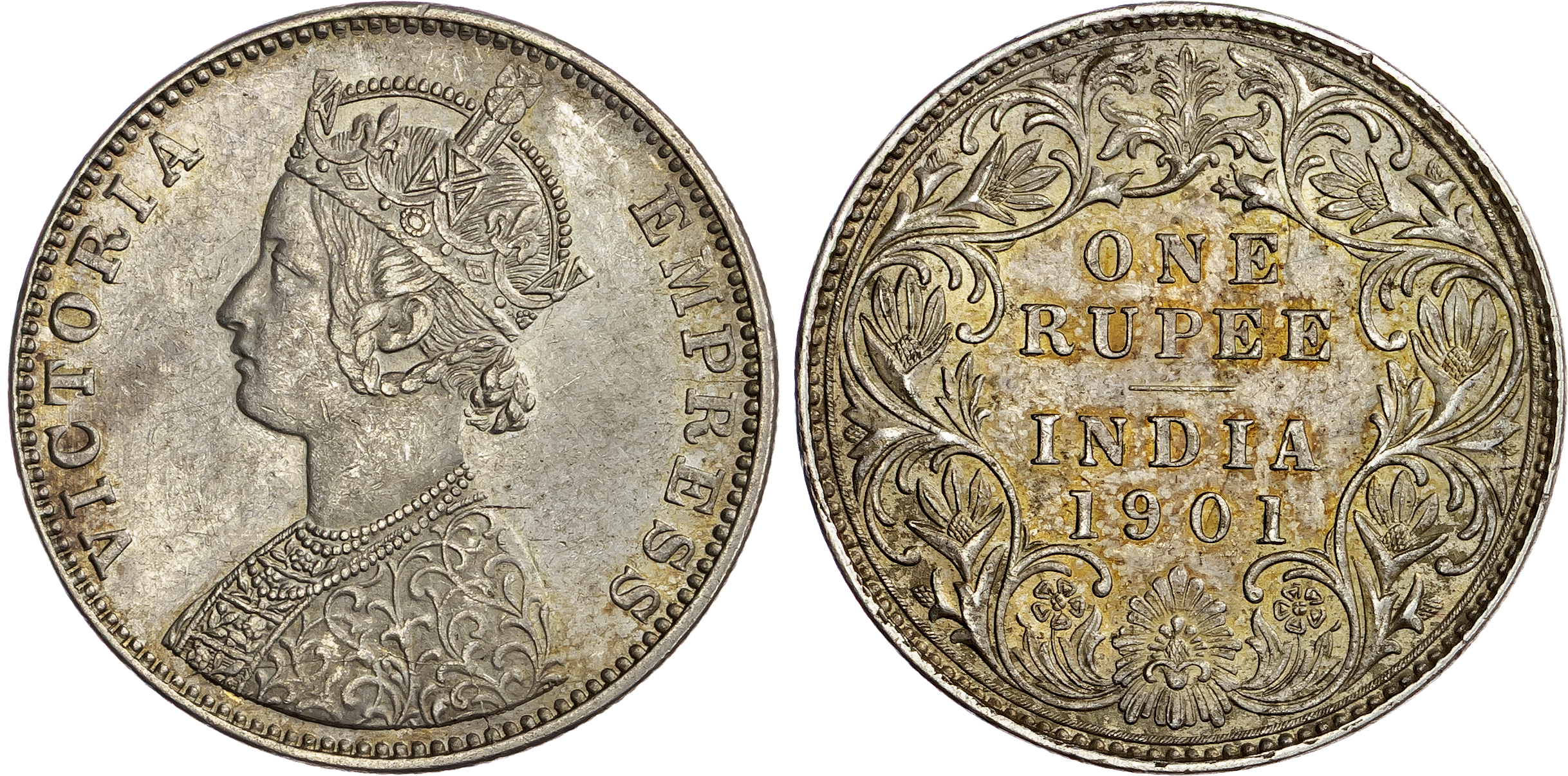 India, EIC, Victoria (1837-1901), silver Rupee, 1901, Bombay, 11.64g (KM 492). About Extremely Fine, cleaned.