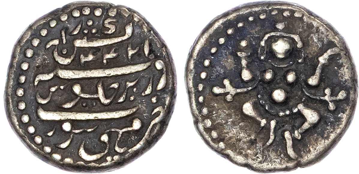 India, Mysore, Krishna Raja Wodeyar (AH 1213-1285 / 1799-1868 AD) silver ¼ Rupee / Pavali, AH 1244 / 1828/9 AD, Mysore, 2.84g (KM C202). Very Fine.