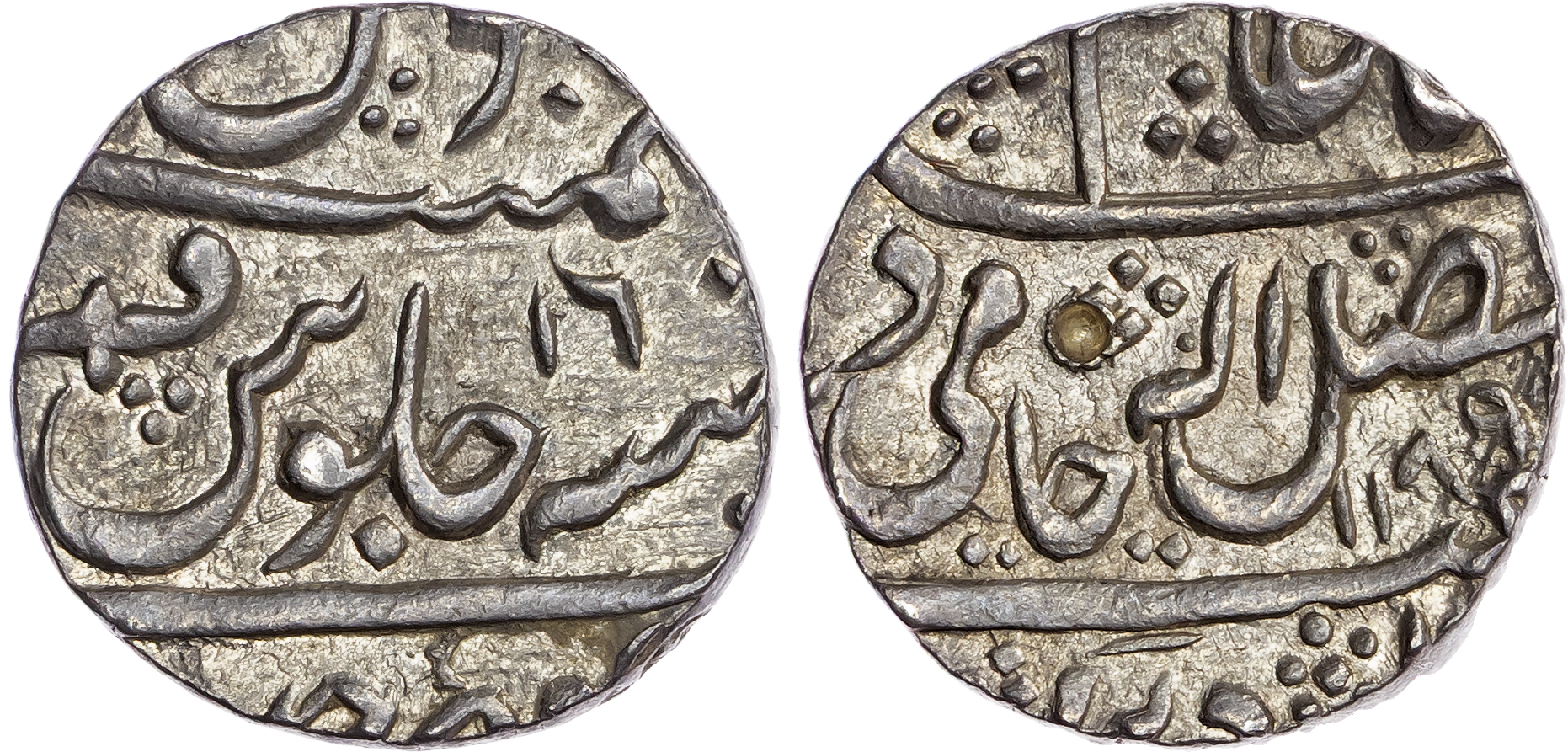 India, Princely States, Gwalior, Daulat Rao (1794-1827), silver Rupee, in the name of Shah Alam II, RY 12,AH 1189, 11.32g (KM 218). About Extremely Fine, test mark.