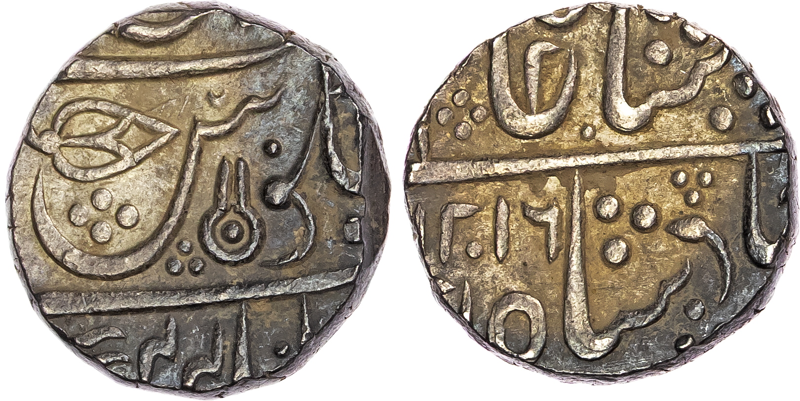 India, Princely States, Indore, silver Rupee, AH 1216/ 1801-1802 AD, RY 44, Malharnagar mint, 11.29g. (KM 58.2). About Extremely Fine, shroff mark.