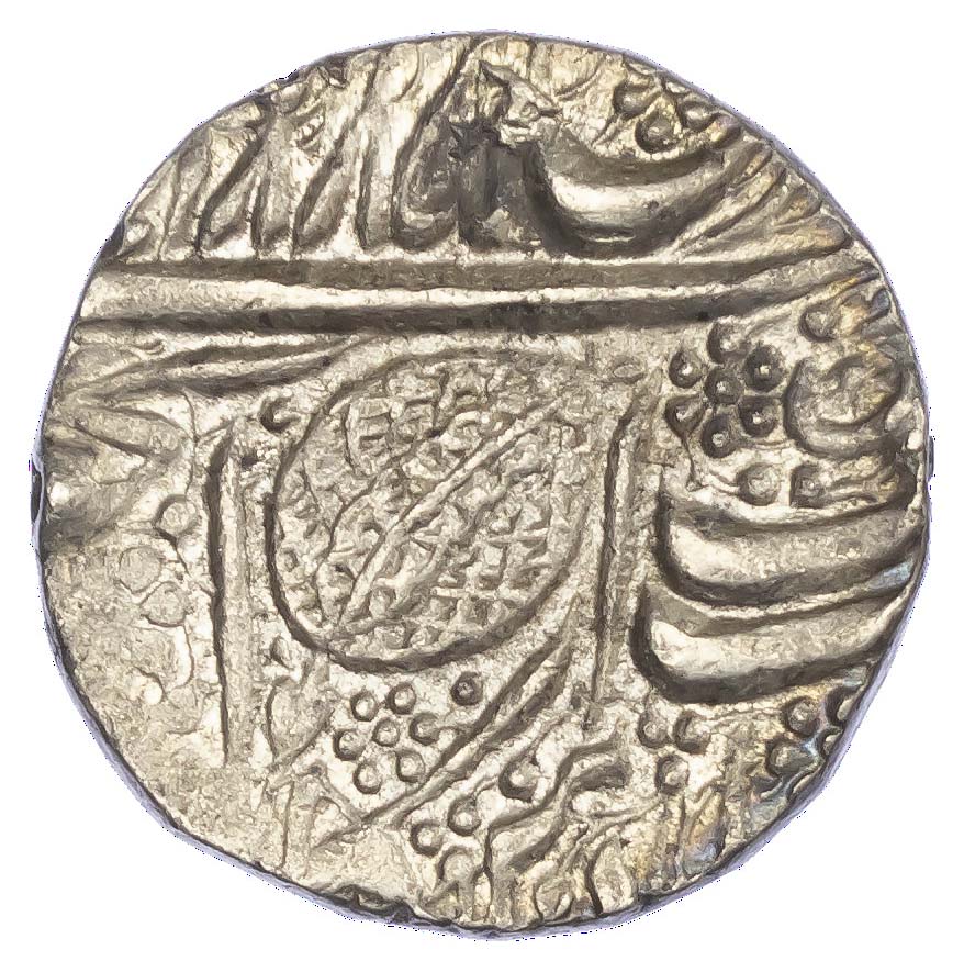 India, Sikh Empire, Ranjit Singh (VS 1858-1896 / 1801-1839 AD), silver Rupee, Amritsar, Herrli Nanakshahi couplet V, umbrella mintmark. Rev. Mint and date formula; peepal leaf, 11.16g (H. 01.12.04).