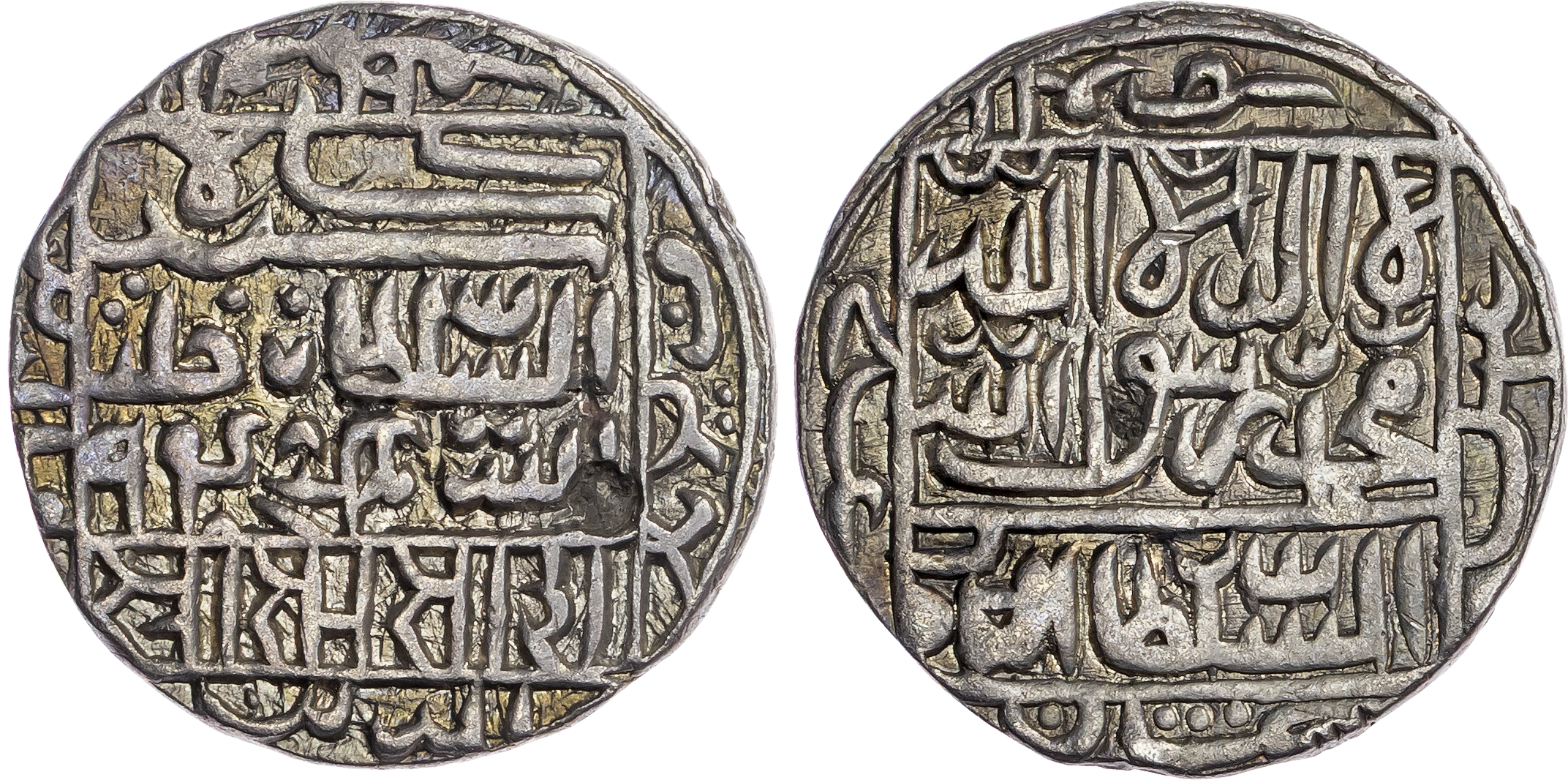 India, Sultans of Delhi, Sher Shah (AH 945-952 / 1538-1545 AD), silver Rupee, AH 948, Pandua, 11.25g (G&G D790). About Extremely Fine, test marks.