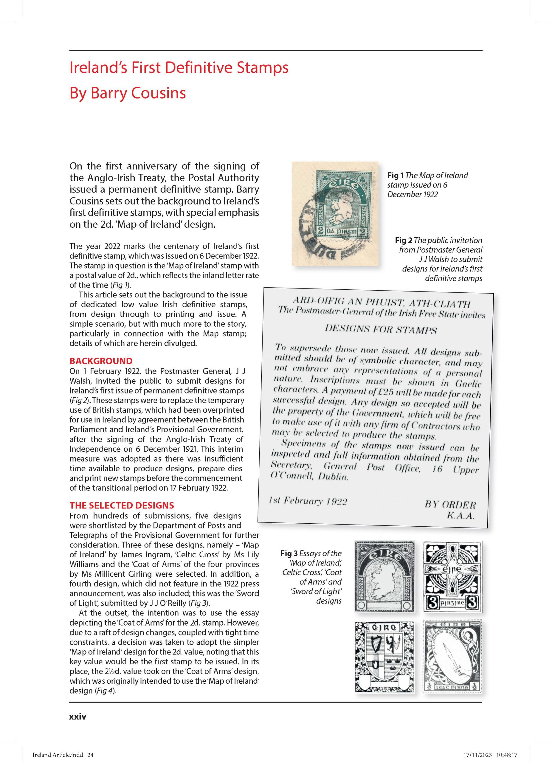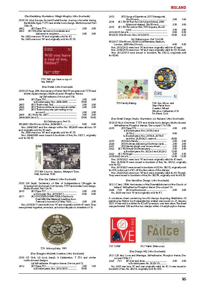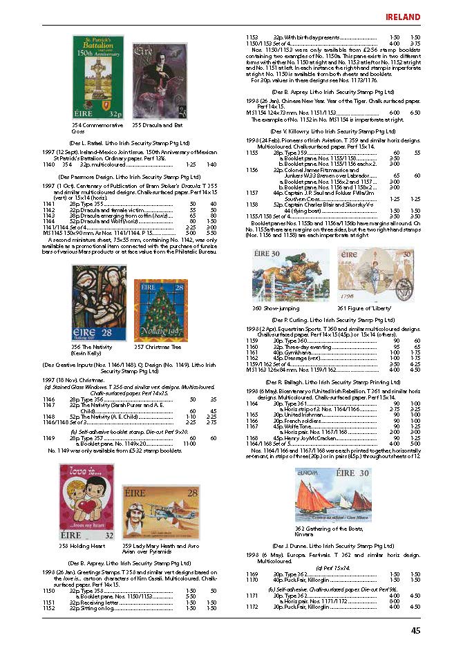 This catalogue provides a comprehensive listing of the stamps of Ireland from the 1922 Provisional Government overprints on the stamps of Great Britain right up to the latest issues.