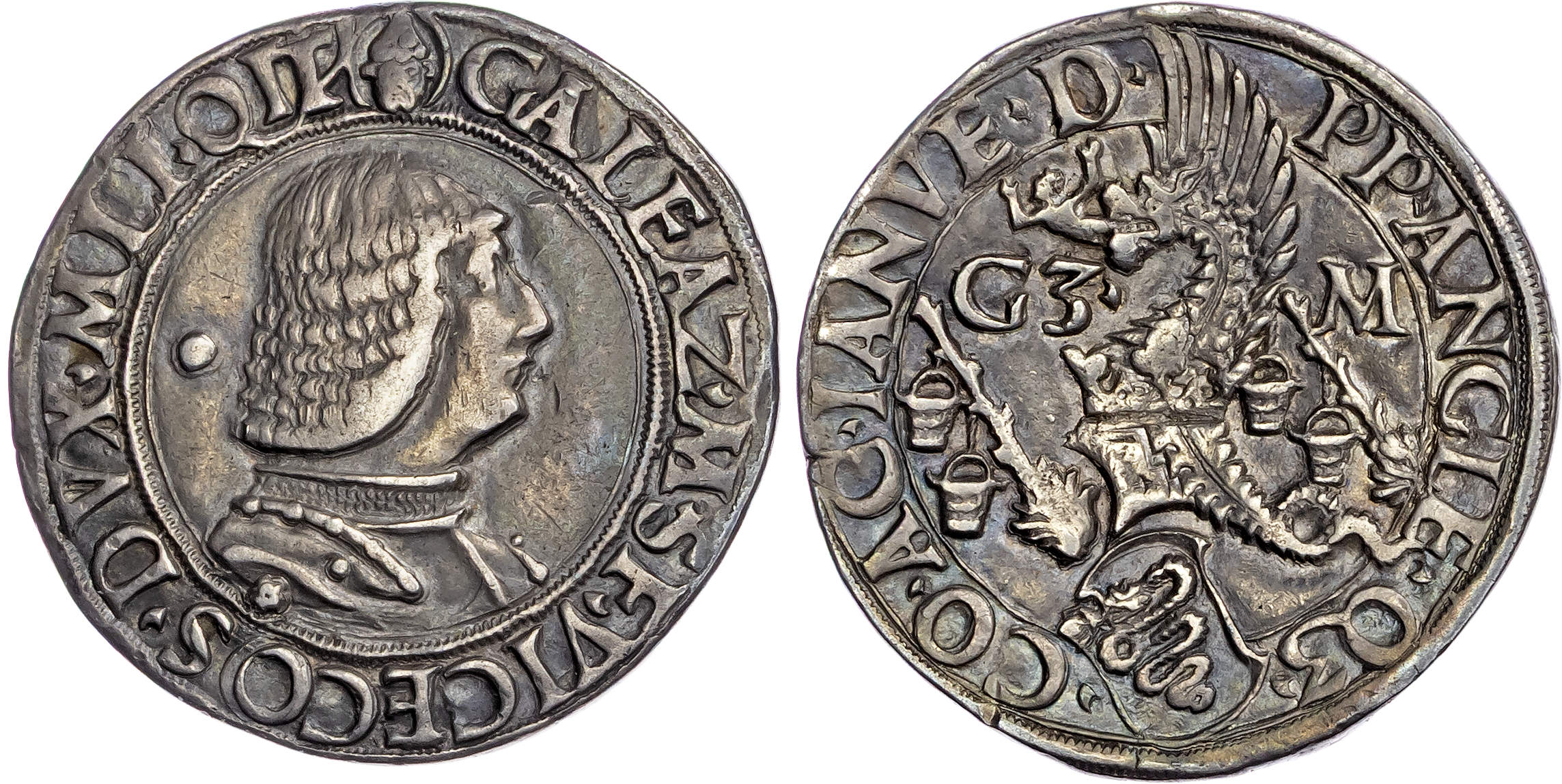 Italy, Milan, Galeazzo Maria Sforza (1466-1476), silver Testone, 9.59g (Crippa 6a; CNI V/168/49). About Extremely Fine.