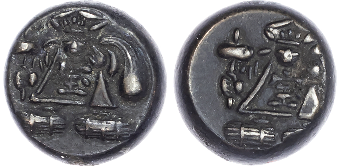 Japan , Hoei (1706-1710), silver alloy Mameita Gin, Daikoku (god of wealth on both sides), with the era character Ho within, 4.19g (JNDA 09-61; JC 05-4-4). Good Very Fine. Rare