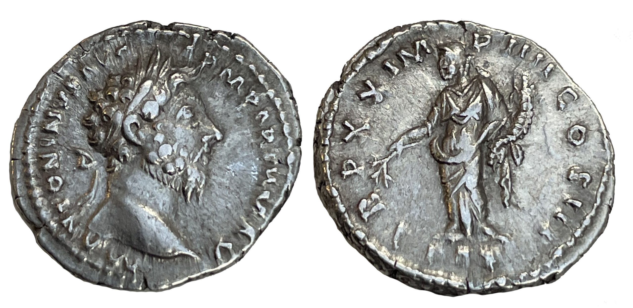 Marcus Aurelius (AD 161-180), Silver Denarius, Rome, AD 166, 3.53g. Obverse: Laureate head of Marcus Aurelius right. Reverse: Pax standing facing, holding branch and cornucopiae. (RIC 159; BMC 401). Very Fine.