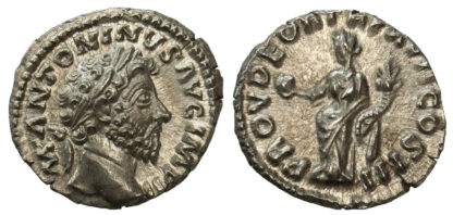 Obverse: M ANTONINVS AVG IMP II, laureate head of Marcus Aurelius facing right.