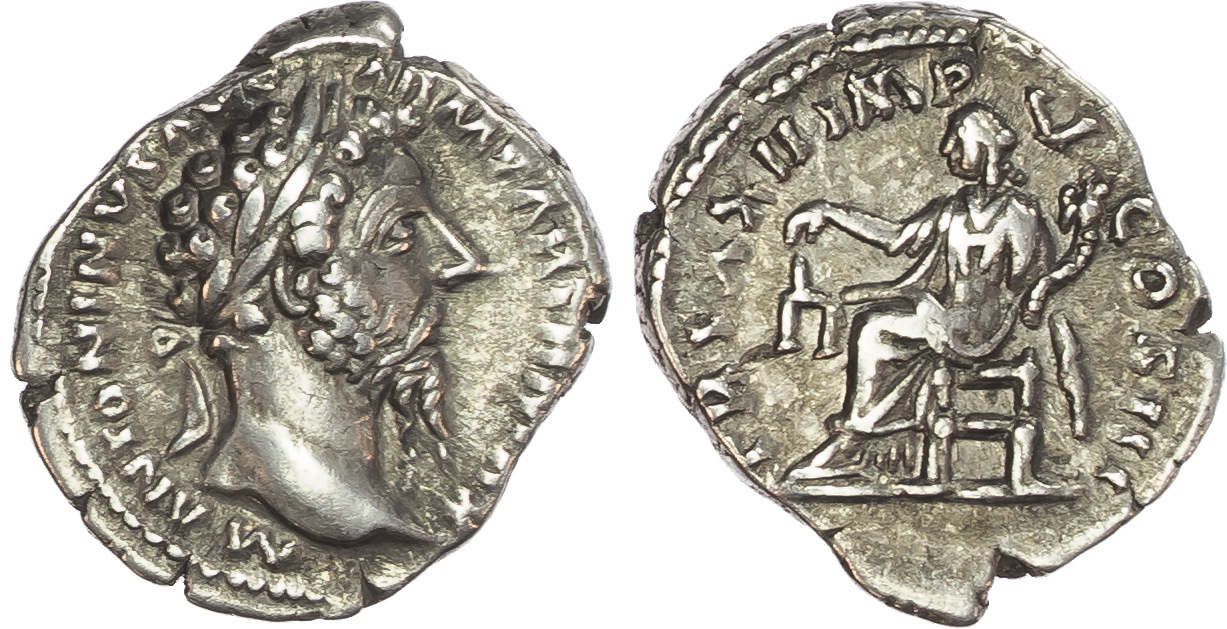 Marcus Aurelius (AD 161-180), Silver Denarius, Rome, AD 167-168, 3.18g. Obverse: Laureate head of Marcus Aurelius right. Reverse: Aequitas seated left, holding scales and cornucopiae. (RIC 209; BMC 467). Very Fine.