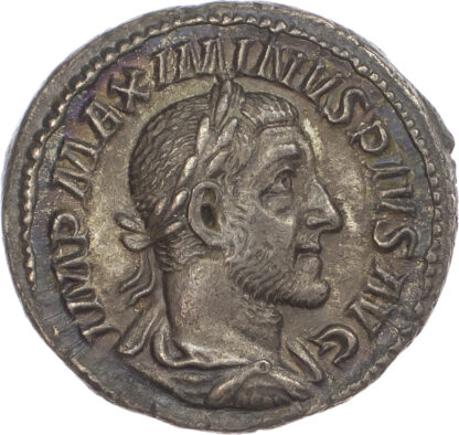 Obverse: MAXIMINVS PIVS AVG GERM, laureate and draped bust of Maximinus Thrax facing right.