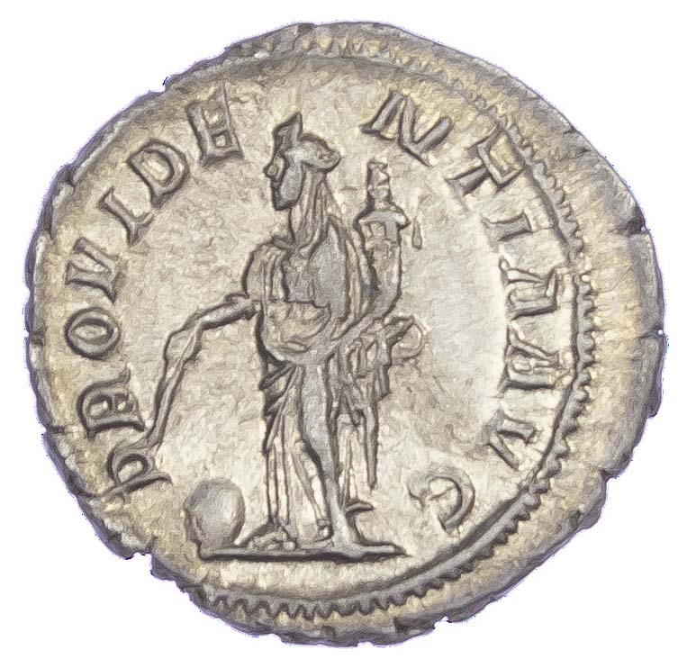 Reverse: Providentia standing left, holding cornucopiae and wand, globe at feet.