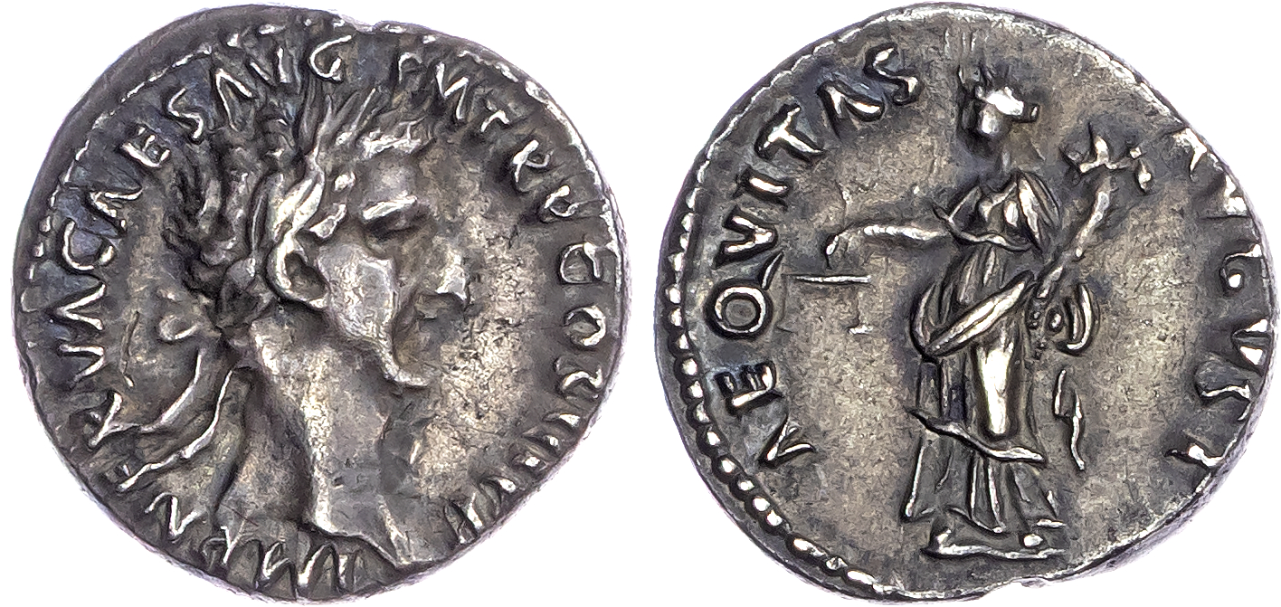 Nerva (AD 96-98) Silver Denarius, Rome, AD 97, 3.28g. Obverse: Laureate head of Nerva right. Reverse: Aequitas standing facing, holding scales and cornucopia. (RIC 25; RSC 9). Good Very Fine, dark toning.