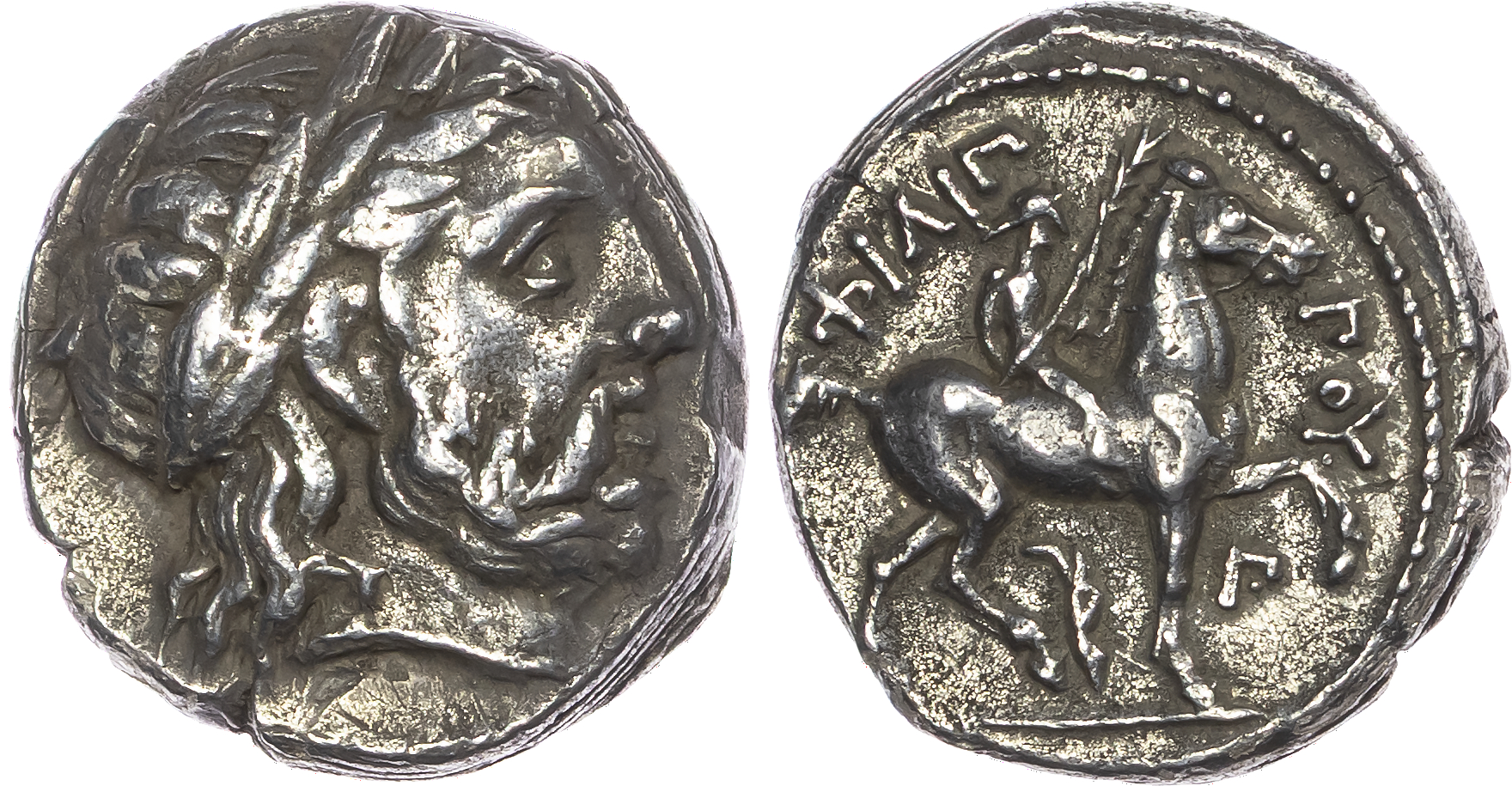 Kingdom of Macedon, Philip II (359-336 BC) AR Tetradrachm, posthumous issue, Amphipolis, c. 323-316 BC, 14.21g. Laureate head of Zeus right. Rev. ΦIΛIΠΠOY, youth on horseback right, holding palm, Π and aplustre below. (Le Rider 410; Pozzi 852). Good Very Fine.