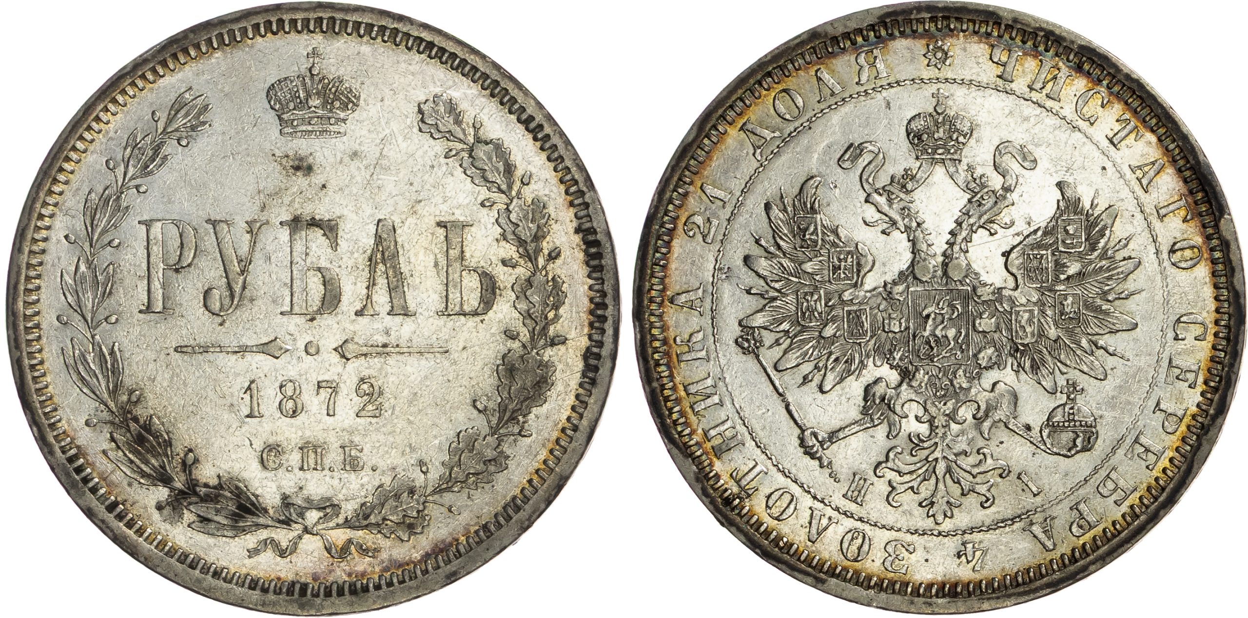 Russia, Alexander II (1855-1881), silver Rouble, 1872 СПБ, initials HI, St. Petersburg, 20.69g (Bit. 85). Good Very Fine, cleaned, scratch to obverse.