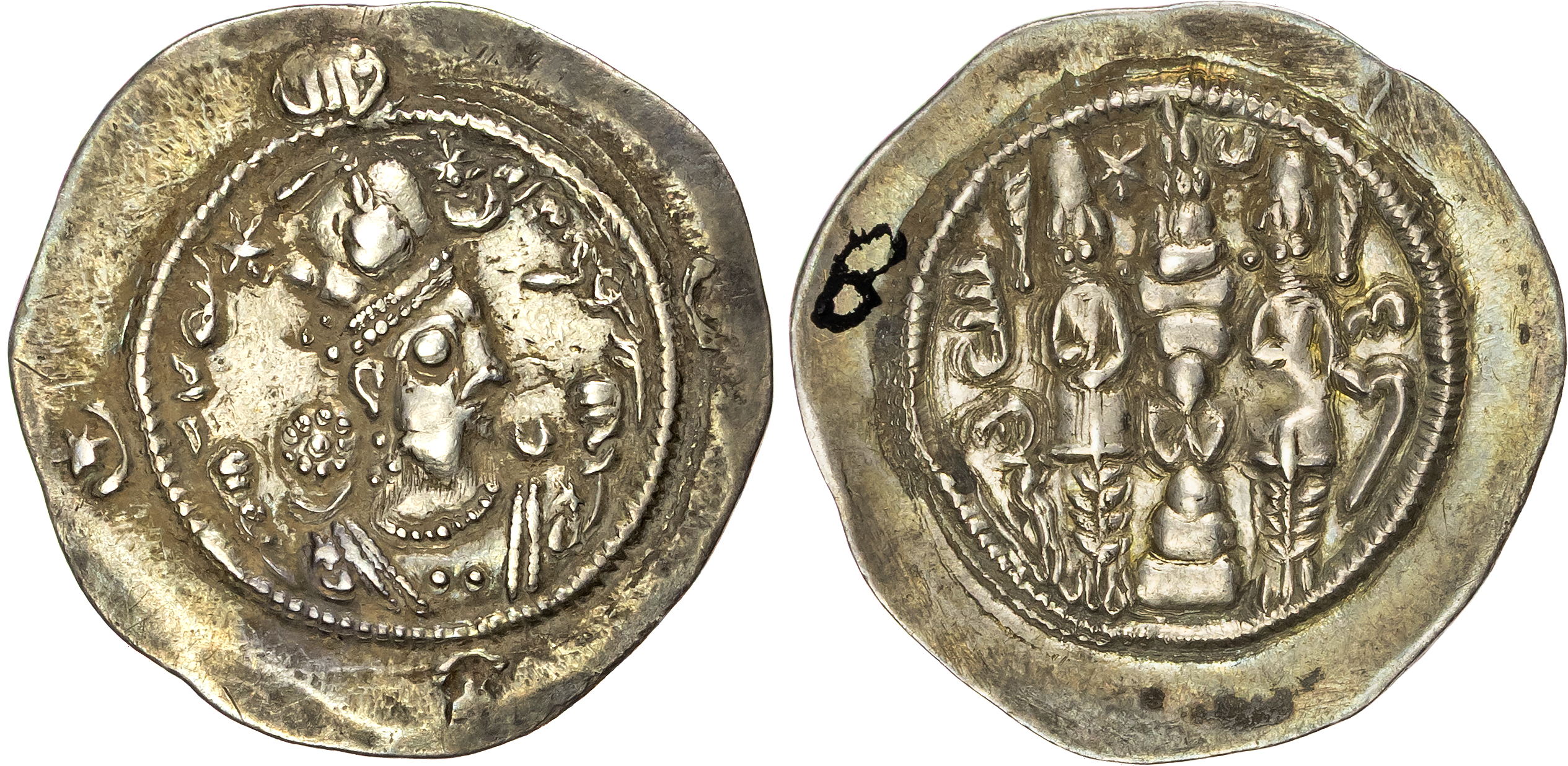 Sasanian, Hormizd IV (579-590 AD), silver Drachm, Year 13, Darabgird, 4.04g (Göbl I/1). About Extremely Fine, toned, ink number to reverse.
