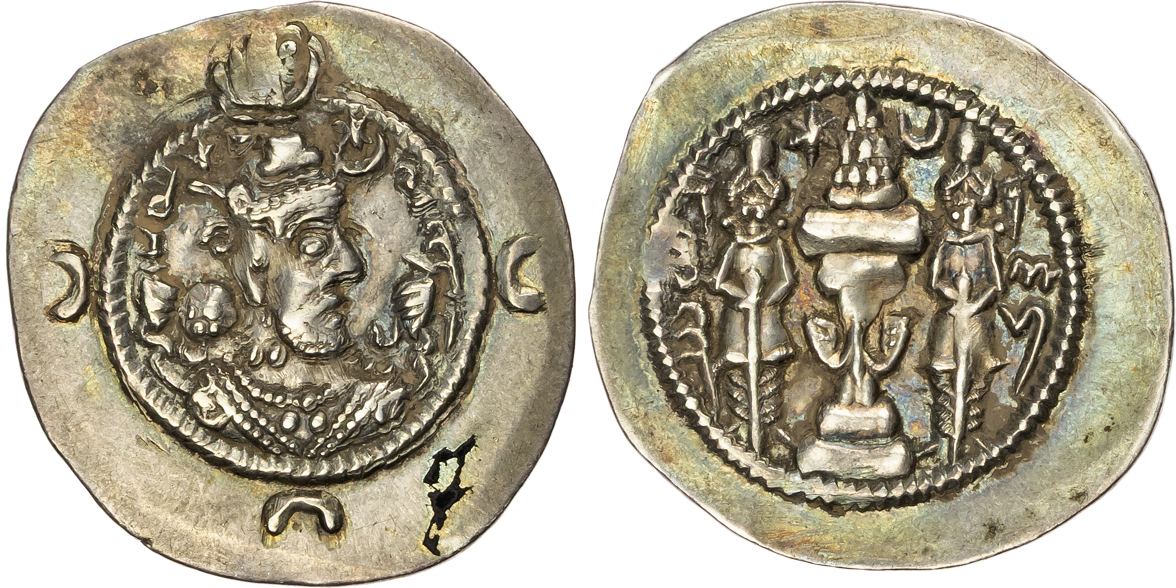 Sasanian, Khusro I (531-579 AD), silver Drachm, Year 31, DL mint, 4.11g (Göbl II/2). About Extremely Fine, ink number on obverse.