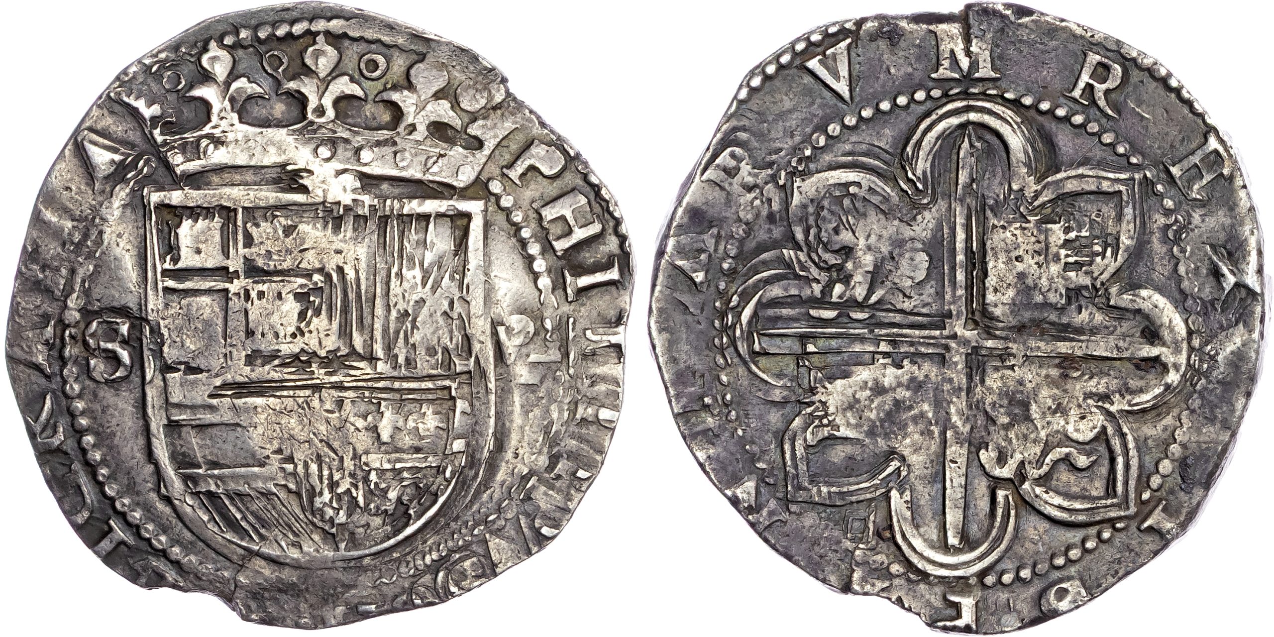 Spain, Philip II (1556-1598), silver 8 Reales, no date, Sevilla mint, 26.93g (Cal. 720). Very Fine, irregular flan.