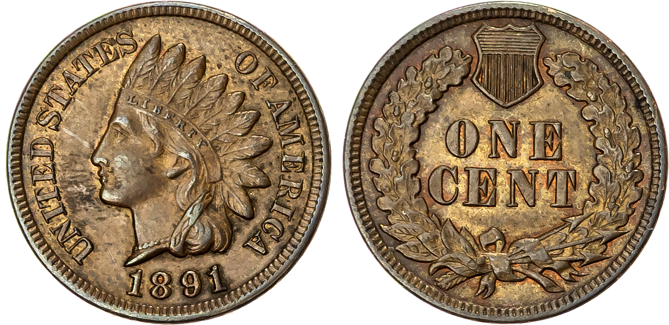USA, Indian Head bronze Cent, 1891, Philadelphia, 3.27g (KM 90a). Extremely Fine.