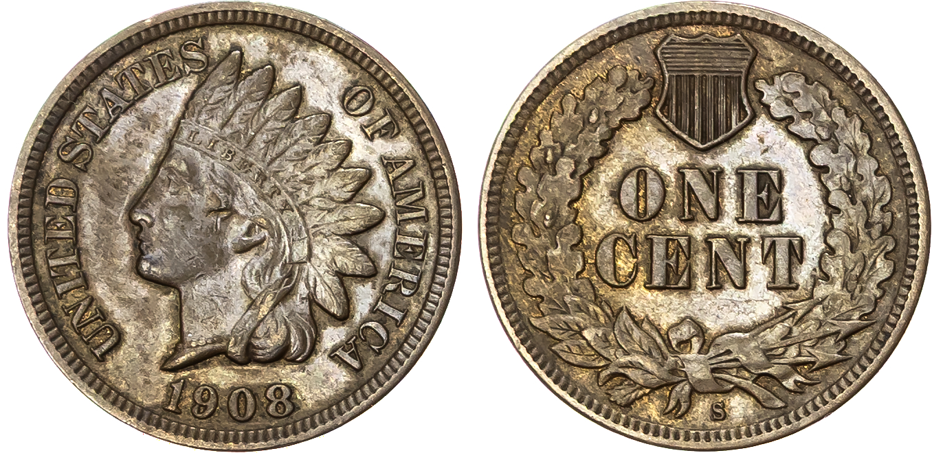 USA, Indian Head bronze Cent, 1908, San Francisco, 3.15g (KM 90a). Extremely Fine, dig on the portrait.