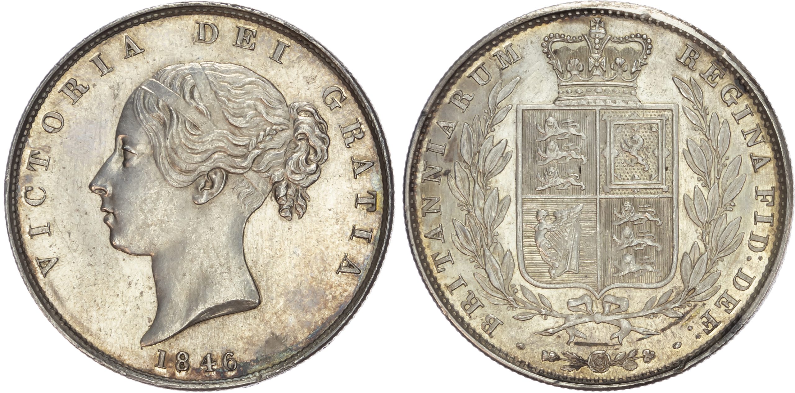 Victoria (1837-1901), Young Head Coinage (1838-1887), AR Halfcrown, type A⁴, 1846. Young head left, Rev. Crowned shield, wreath surrounding, 14.14g/6h. (Bull 2724; ESC 680; S. 3888). Good Extremely Fine or better, lustrous. Small knicks to reverse.