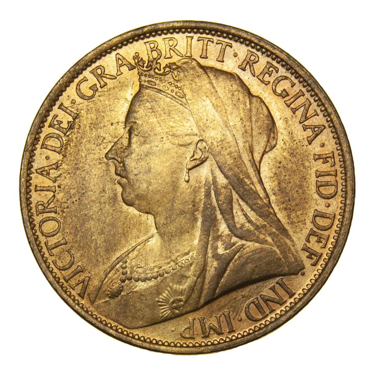 Victoria (1837-1901) Bronze Old Head Penny, 1895. Obverse portrait by Thomas Brock, toothed border both sides, latin legend reads VICTORIA. DEI. GRA. BRITT. REGINA. FID. DEF. IND. IMP. Reverse, design of Britannia seated on rock with upright trident to the right and shield to the left, denomination above (S.3691; Fr. 141). Uncirculated and lustrous. £85
