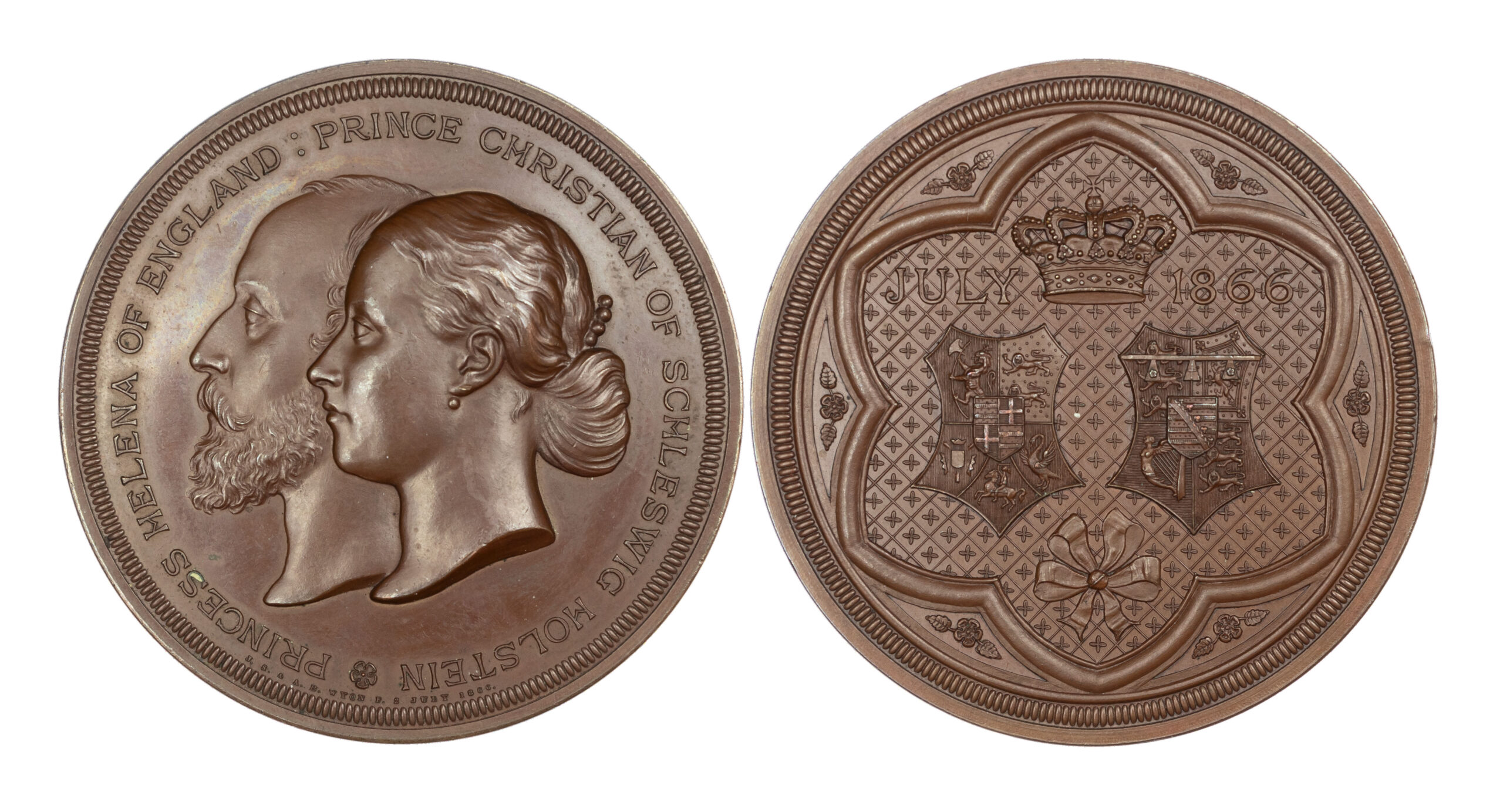 Victoria, Marriage of Princess Helena to Prince Christian, AE Medal 1866 by J.S and A.B Wyon (Eimer 1583a; BHM 2859). Good Extremely Fine, superb.