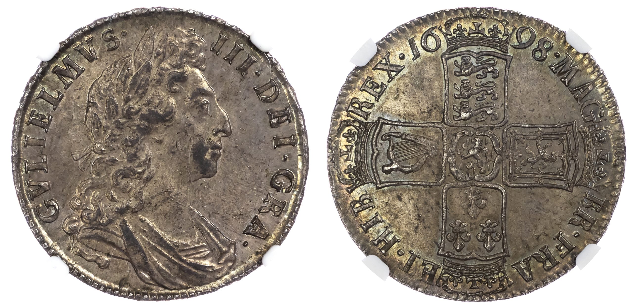 George I (1714-27), Gold Two Guineas, 1720, 20 struck over 17. Laureate head right, toothed border both sides, legend reads GEORGIVS DG MBFE ET HIB REX F.D. Rev, crowned cruciform shields with emblematic sceptres in angles, incorporating the Arms of Hanover, garter star in sunburst at centre, nine strings to harp, date either side of top crown, reads BRVN ET L DVX SRIATH ET EL, edge grained (S.3627; EGC 500; MCE 243). Well struck with rich bloom across surfaces, some wear or annealing to the high points. Good very fine some parts nearer to extremely fine, rarer with the overdate. Much eye appeal.